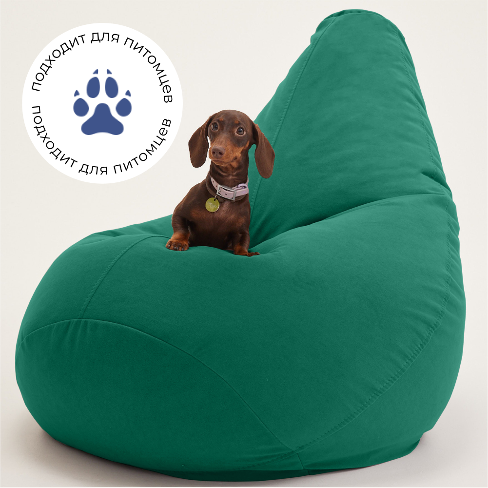 Кресло-мешок груша Bean Joy, размер ХXL, мебельный велюр, темный изумруд