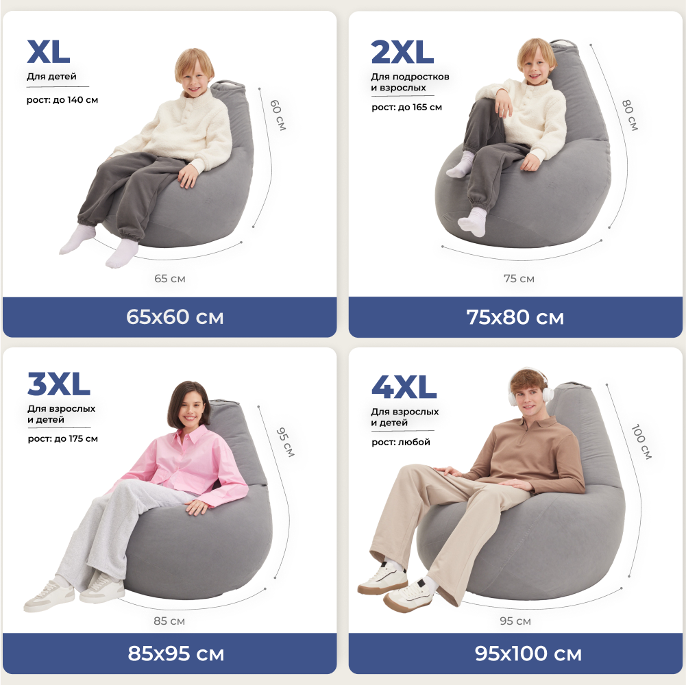 Кресло-мешок груша Bean Joy, размер ХXL, мебельный велюр, сталь