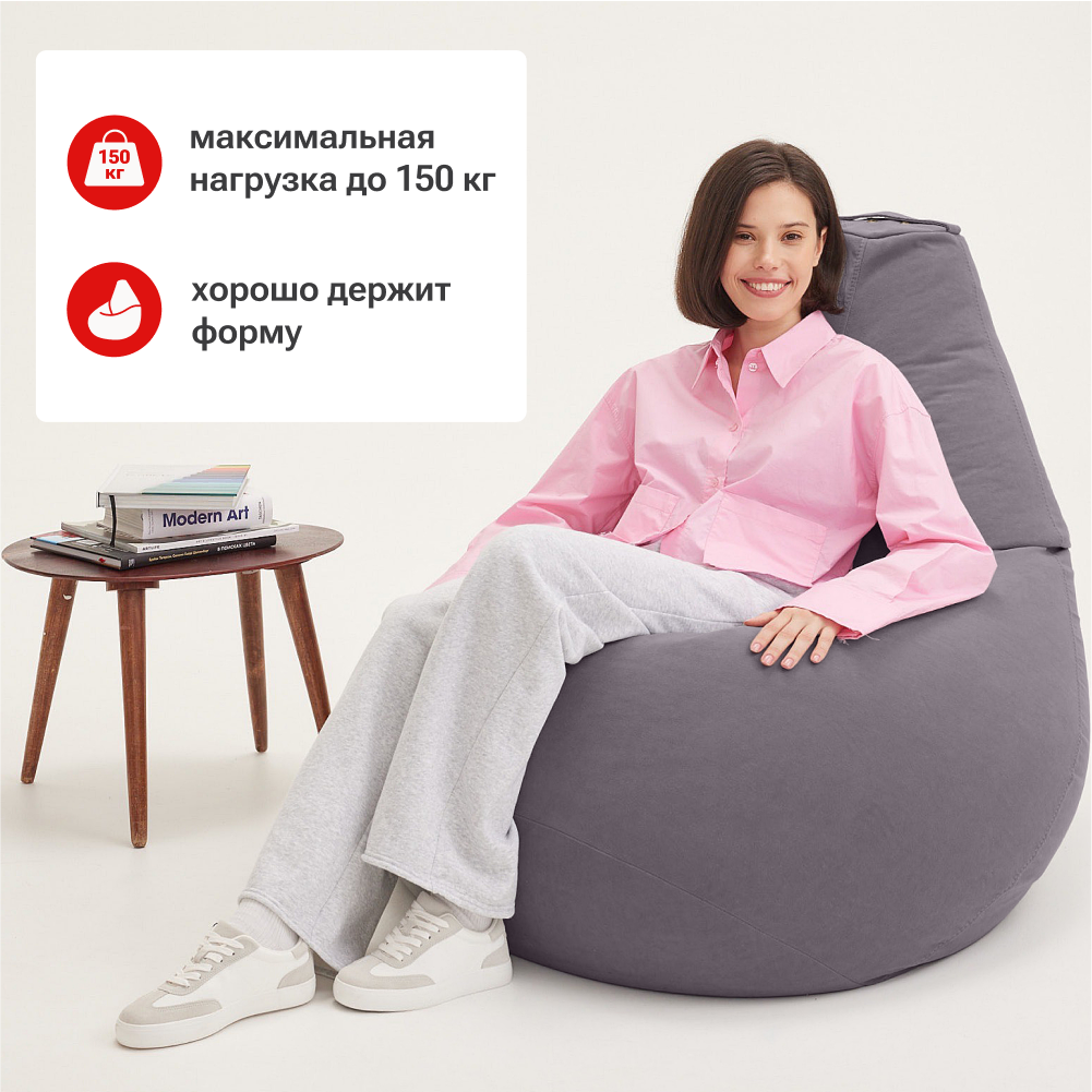 Кресло-мешок груша Bean Joy, размер ХXL, мебельный велюр, сталь