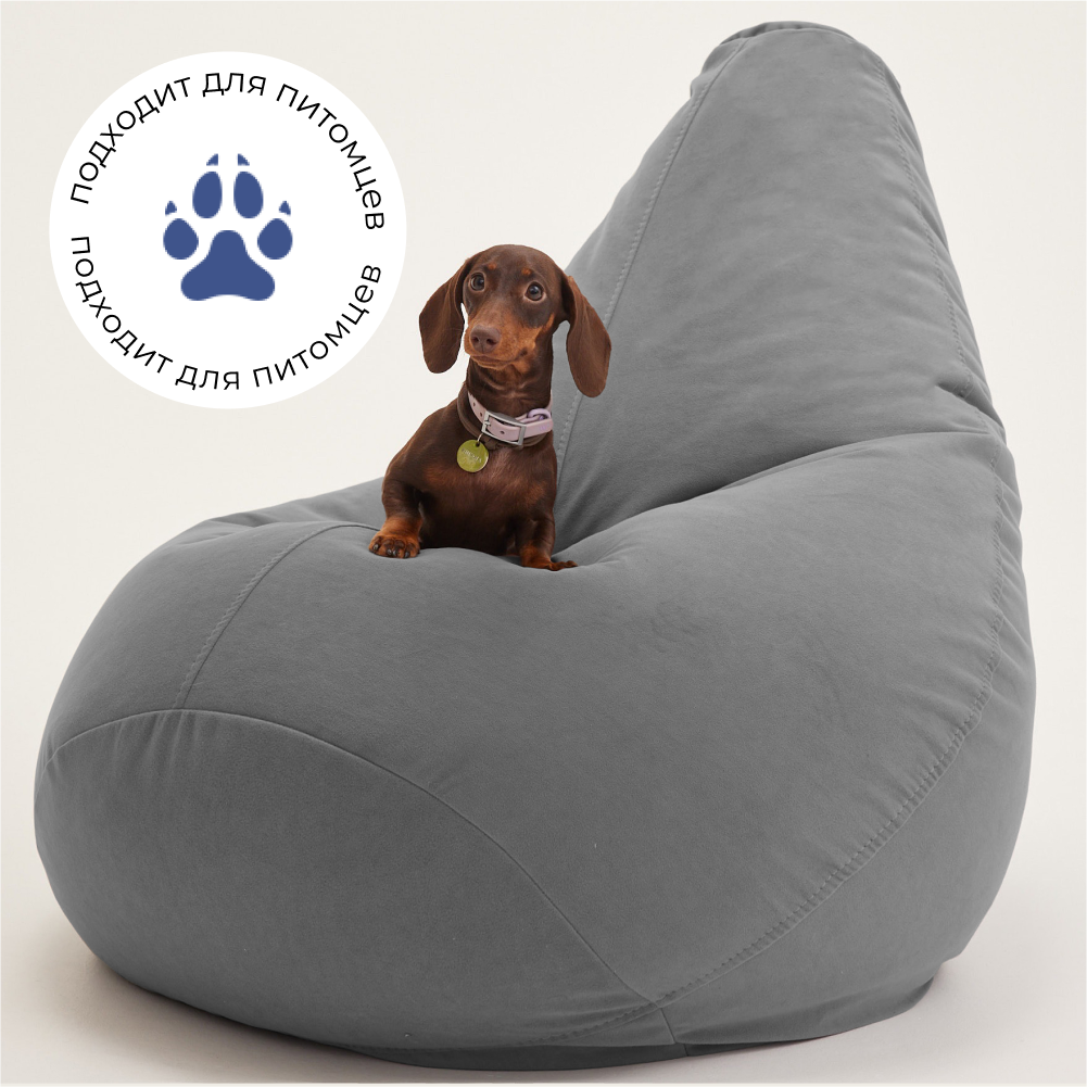 Кресло-мешок груша Bean Joy, размер ХXL, мебельный велюр, сталь