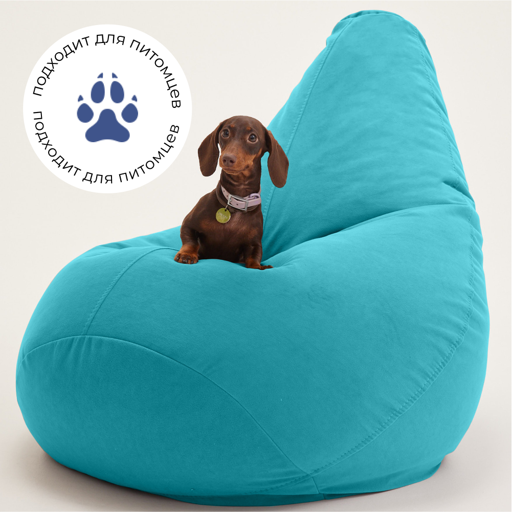 Кресло-мешок груша Bean Joy, размер XХХХL, мебельный велюр, глубокая бирюза