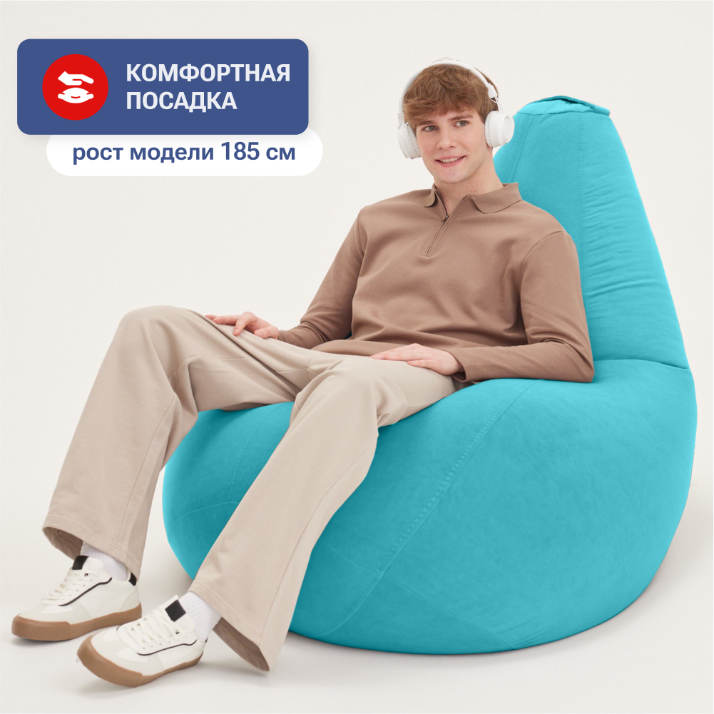 Кресло-мешок груша Bean Joy, размер ХXL, мебельный велюр, глубокая бирюза