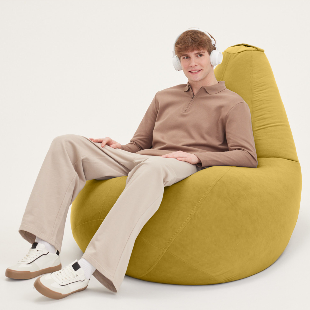 Купить Кресло-мешок груша Bean Joy, размер XХХХL, мебельный велюр, горчичный