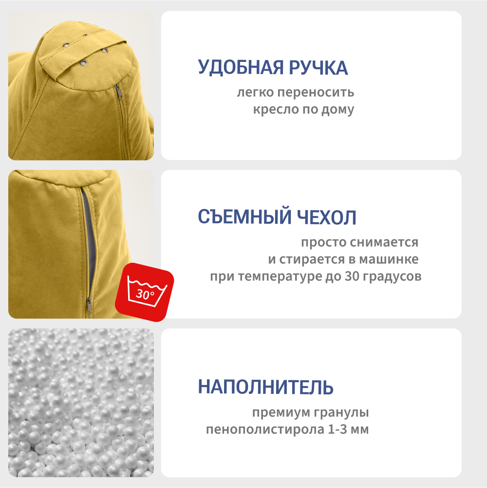 СохранитьКресло-мешок груша Bean Joy, размер XХХХL, мебельный велюр, горчичный интересное: