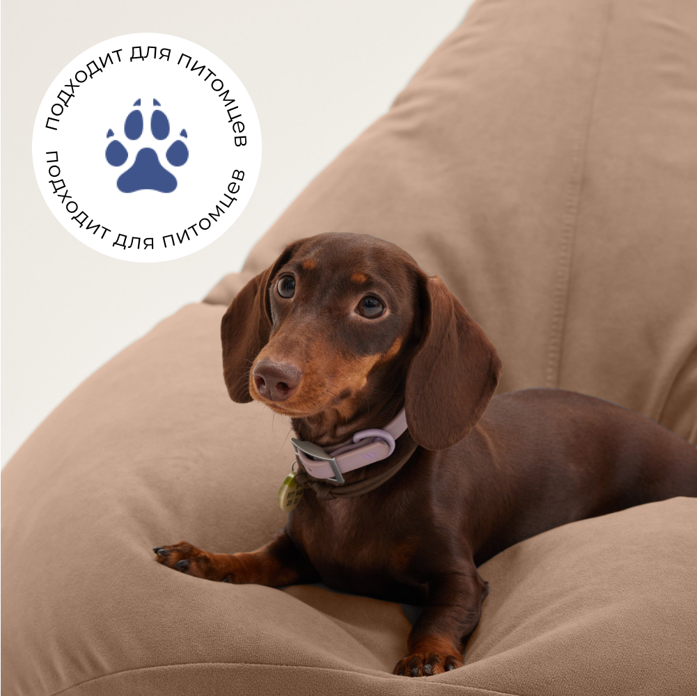 Кресло-мешок груша Bean Joy, размер XХХХL, мебельный велюр, теплый бежевый