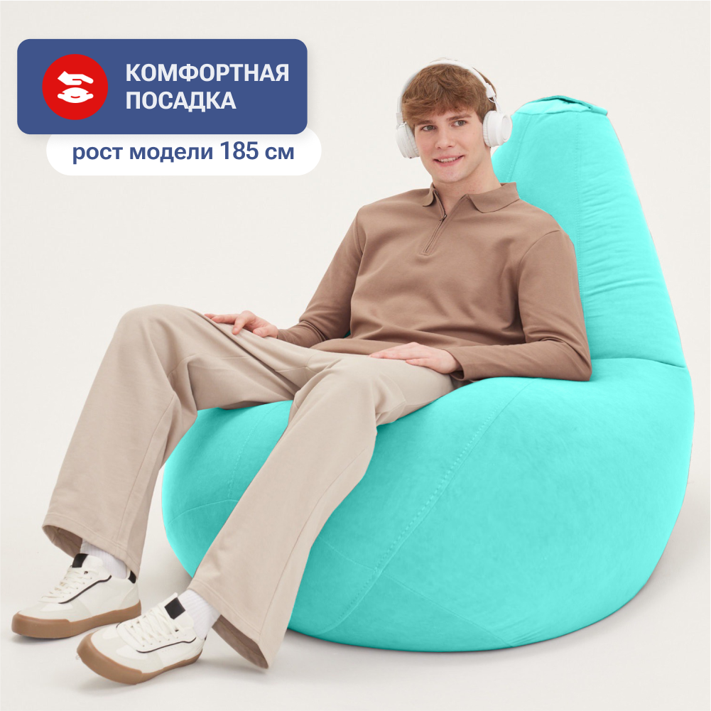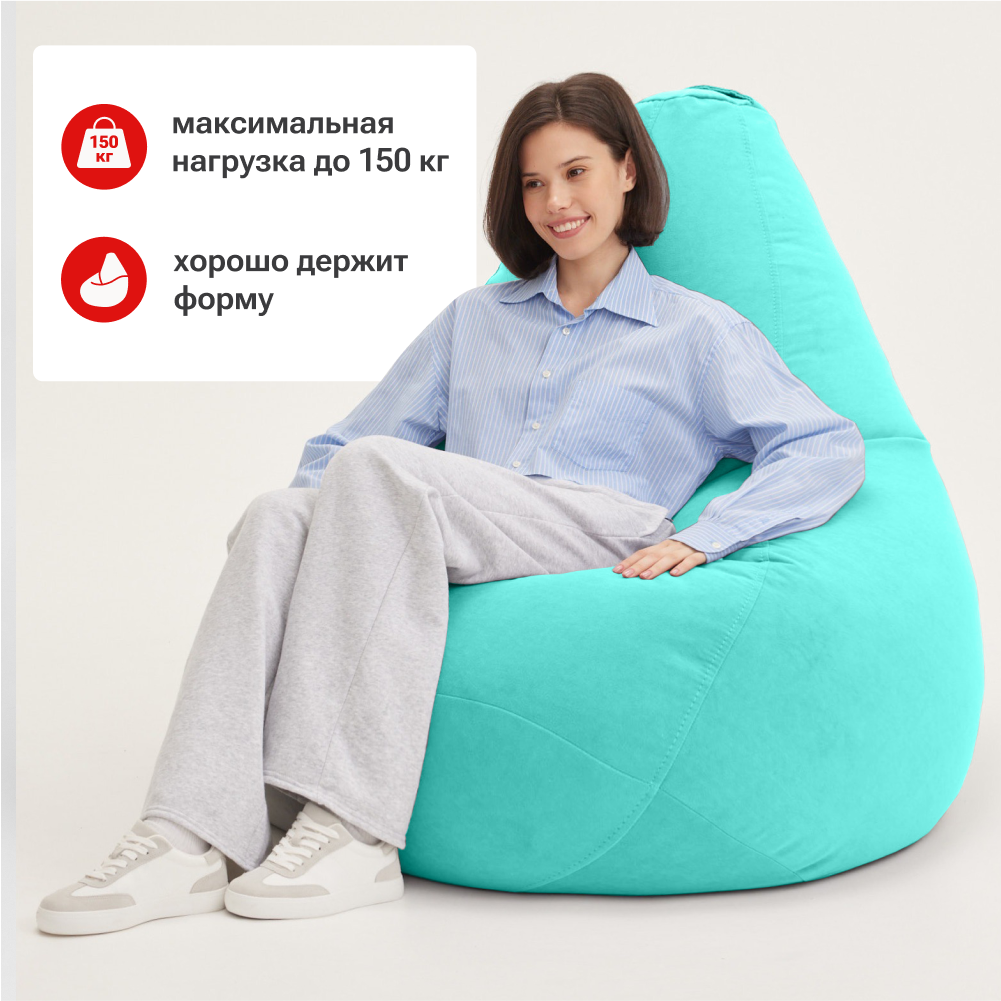 Кресло-мешок груша Bean Joy, размер ХXL, мебельный велюр, глубокая бирюза