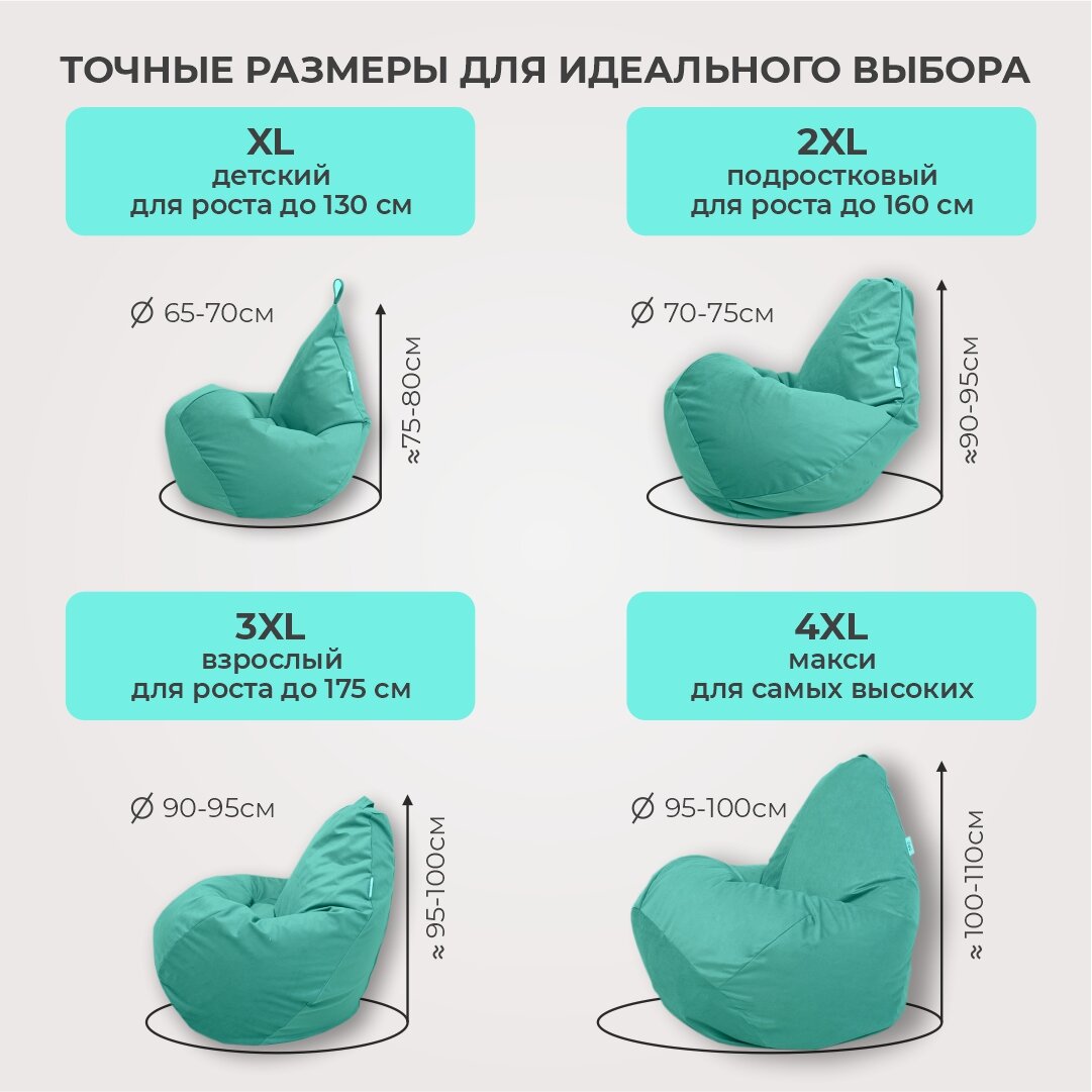 СохранитьКресло мешок Груша 2XL светло-голубой/бирюзовый Велюр интересное:
