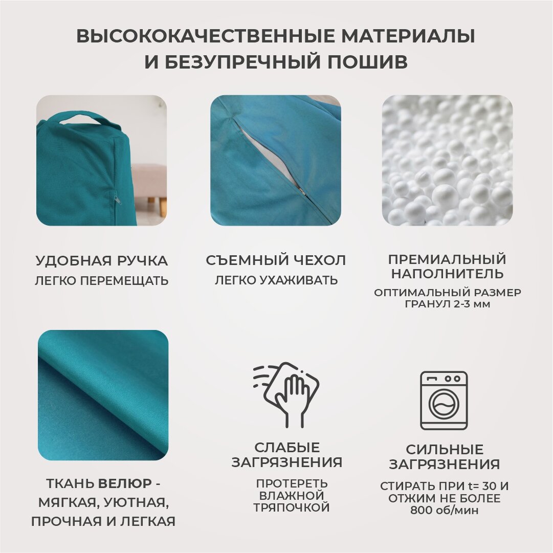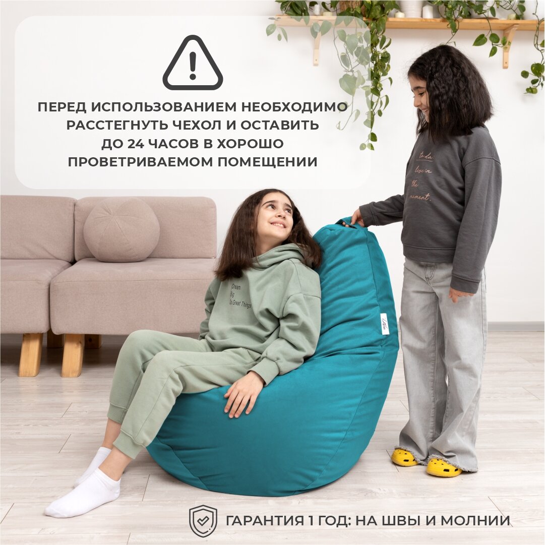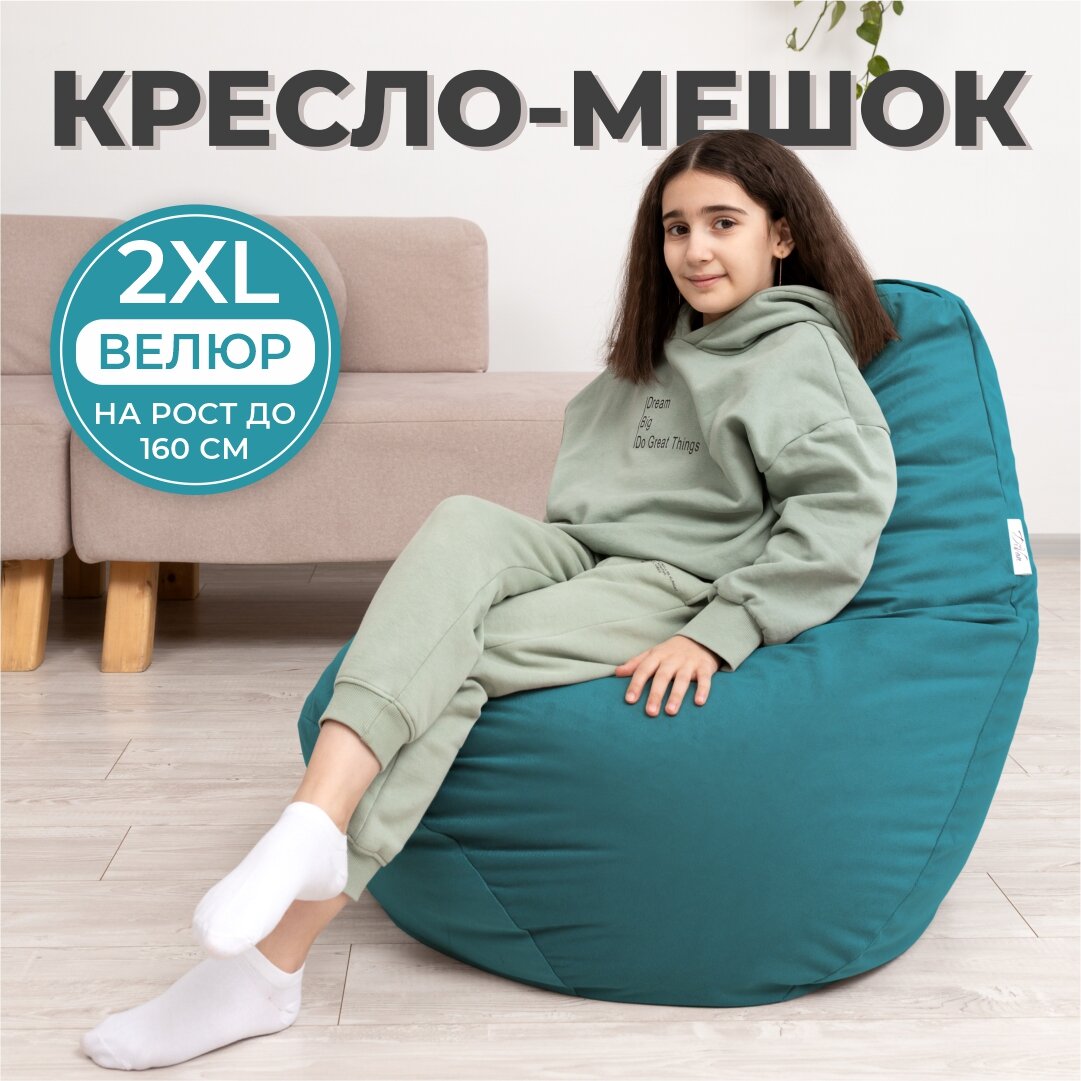 Кресло мешок Груша 2XL светло-голубой/бирюзовый Велюр