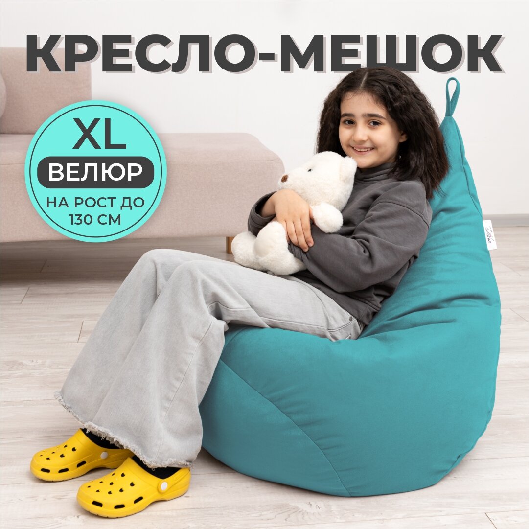 Купить Кресло мешок Груша XL светло-голубой/бирюзовый Велюр