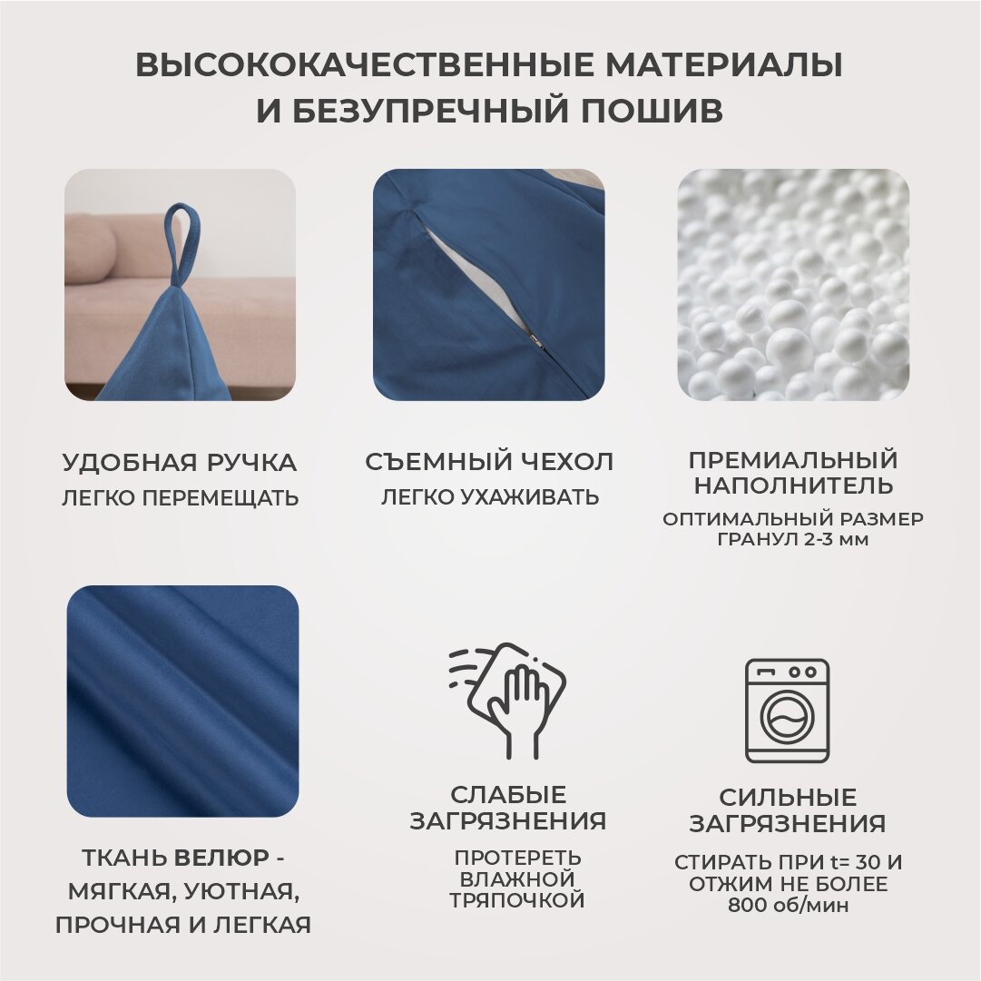 СохранитьКресло мешок Груша XL синий Велюр интересное: