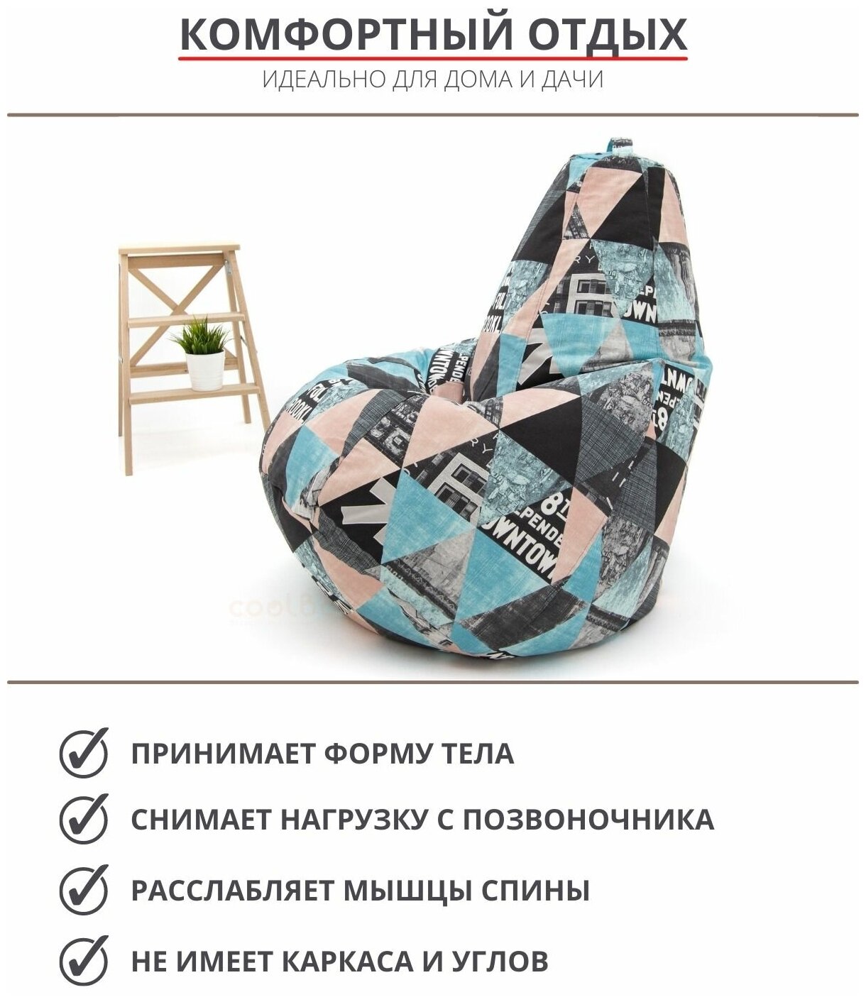 СохранитьКресло мешок груша XXL бескаркасный детский мягкий Coolbag Стайл жаккард интересное: