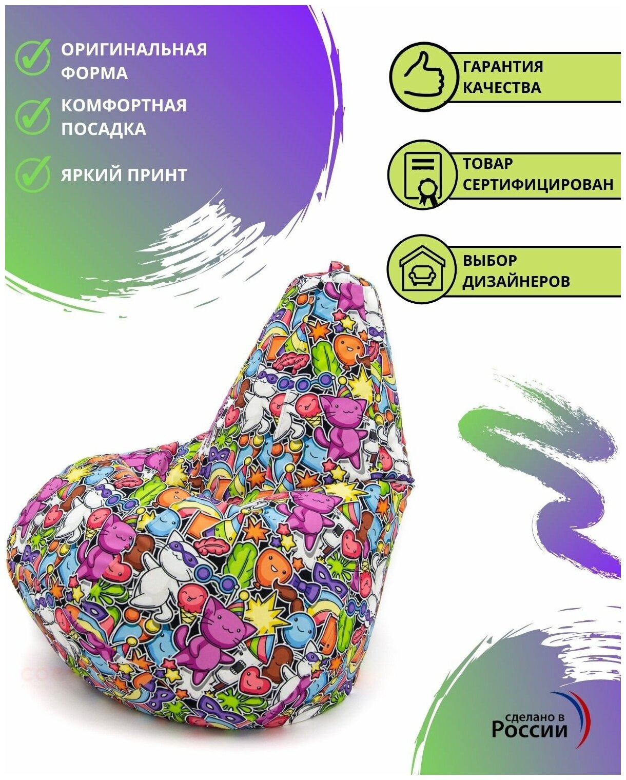 Кресло мешок груша XXL бескаркасный детский мягкий Coolbag Кошки жаккард