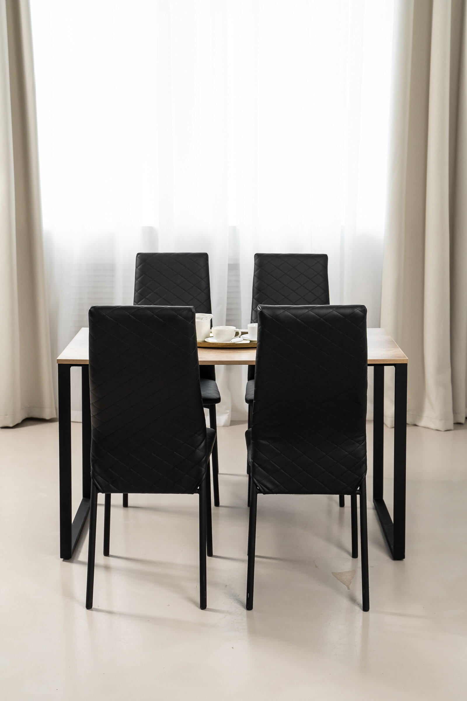 Купить Обеденная группа Стол и 4 стула, стол «дуб Каньон» 120х60х75, стулья Черные, искусственная кожа 4 шт.