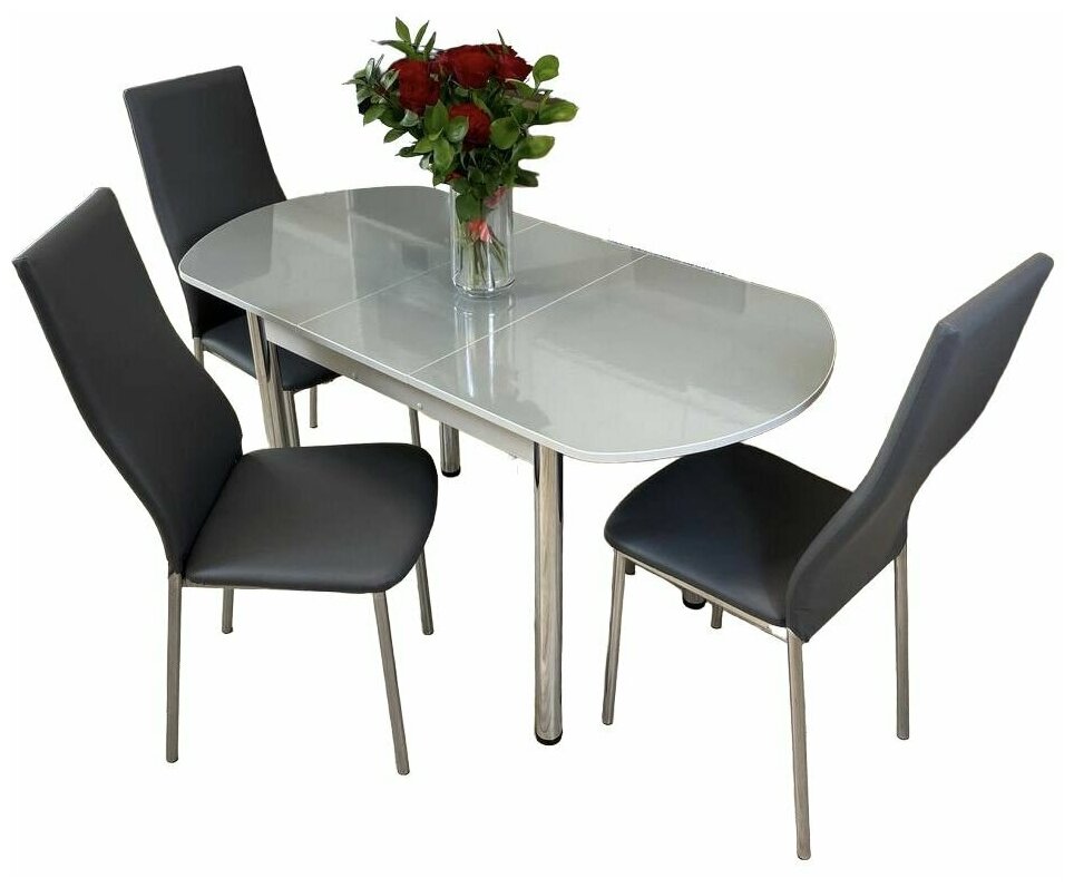Купить Обеденная группа стол кухонный со стульями NGVK Овал Металлик и 3 стула Омега цвет Серый