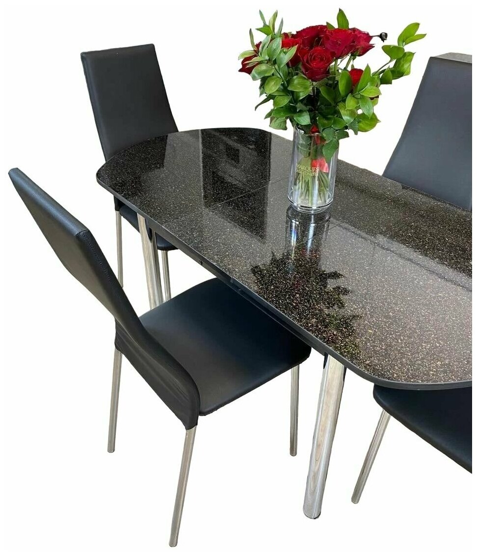 Обеденная группа стол кухонный со стульями NGVK Овал Черный мрамор и 3 стула Омега цвет Черный