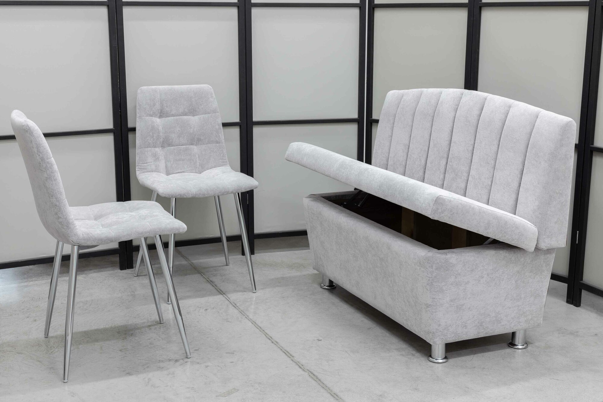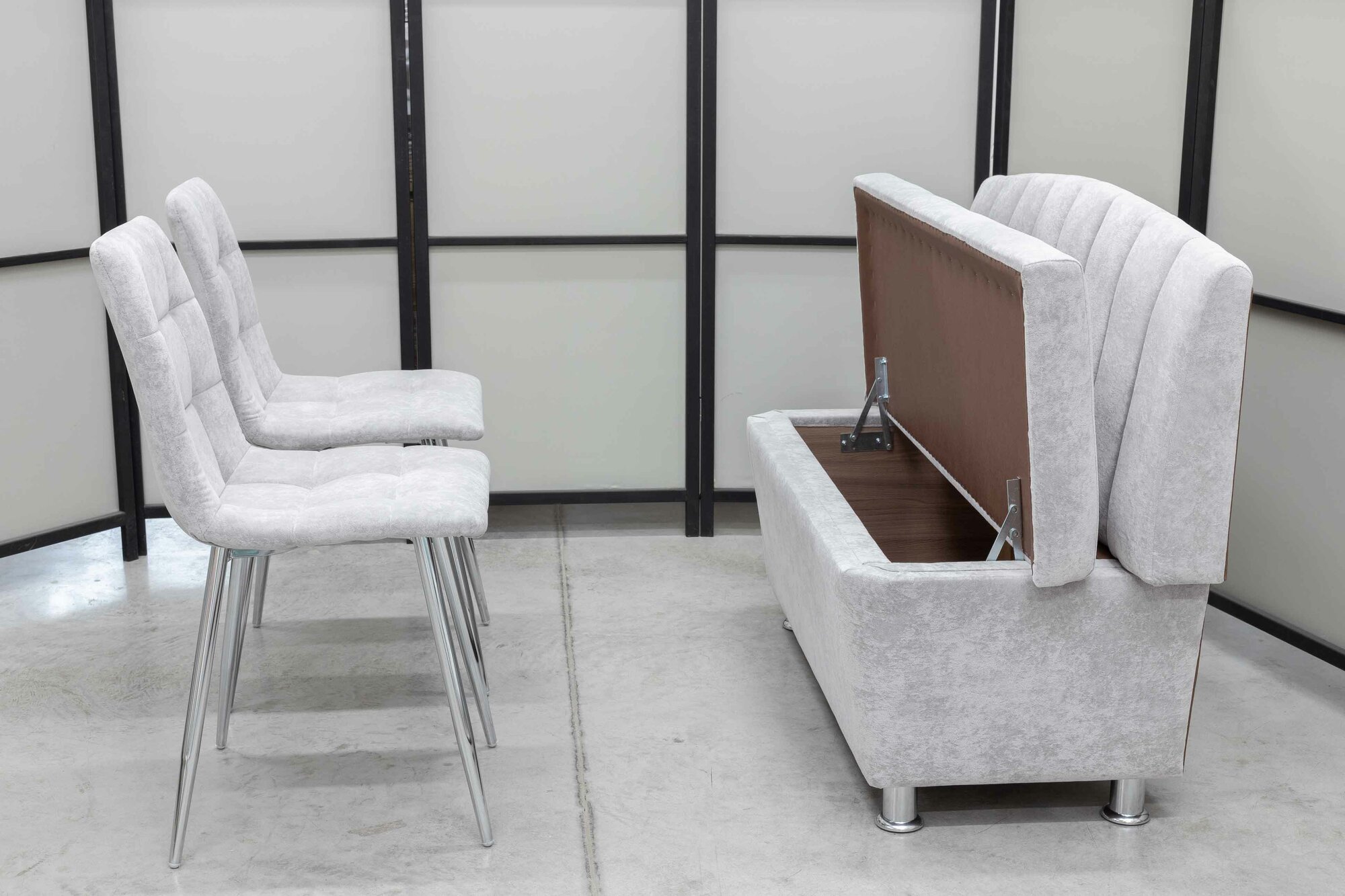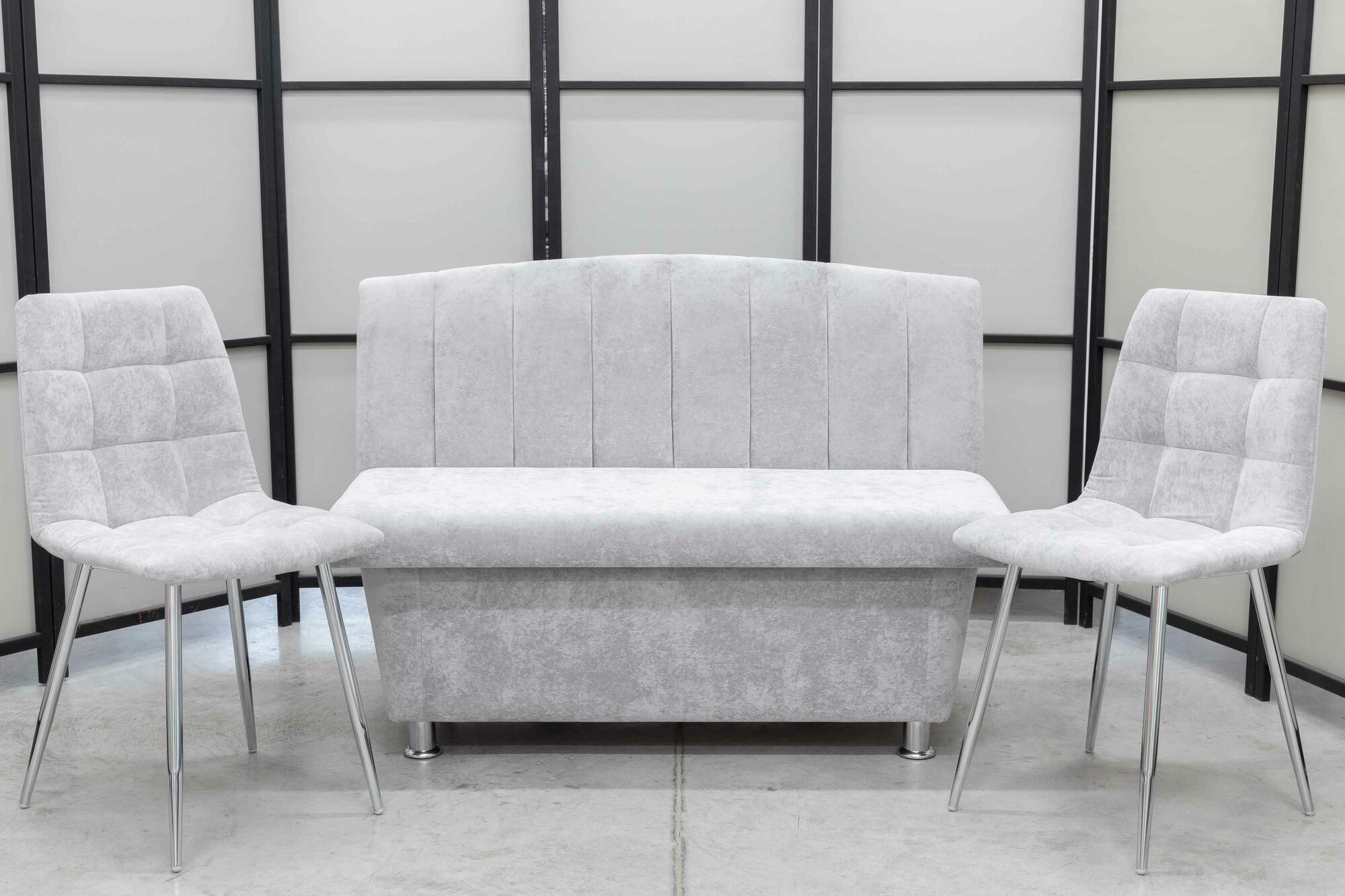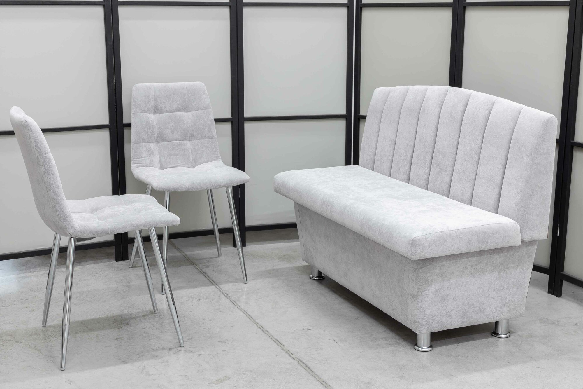Купить Кухонный диван Альт со стульями (2 шт.), 120х56 см, обивка моющаяся, антивандальная, антикоготь, цвет - светло-серый