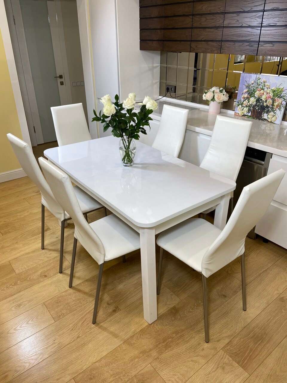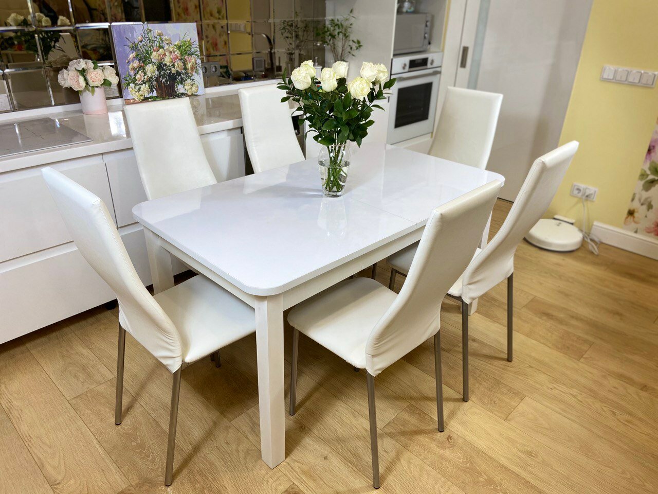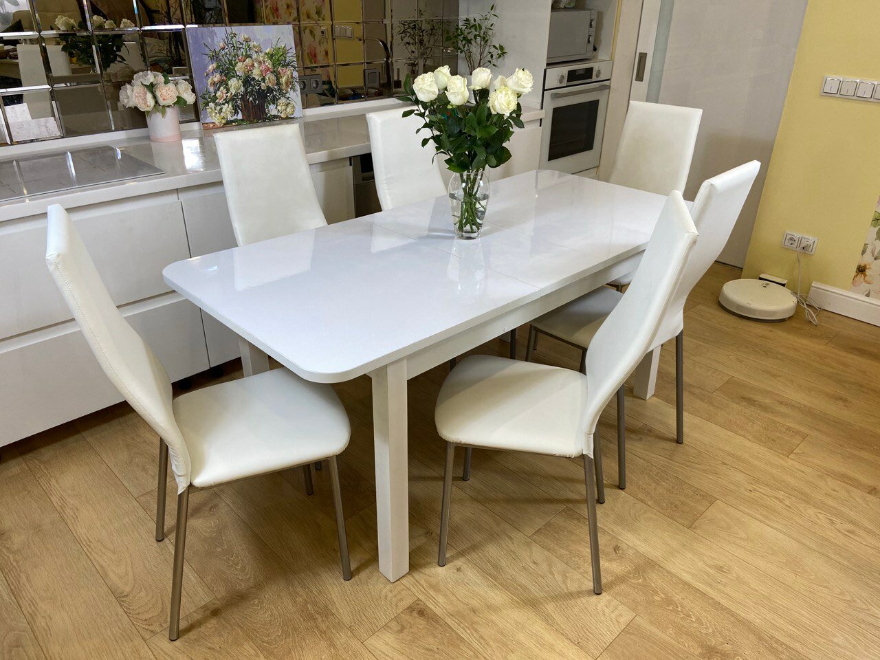 Обеденная группа Три Бобра макси Белый Глянец / Волна белый, экокожа интересное: