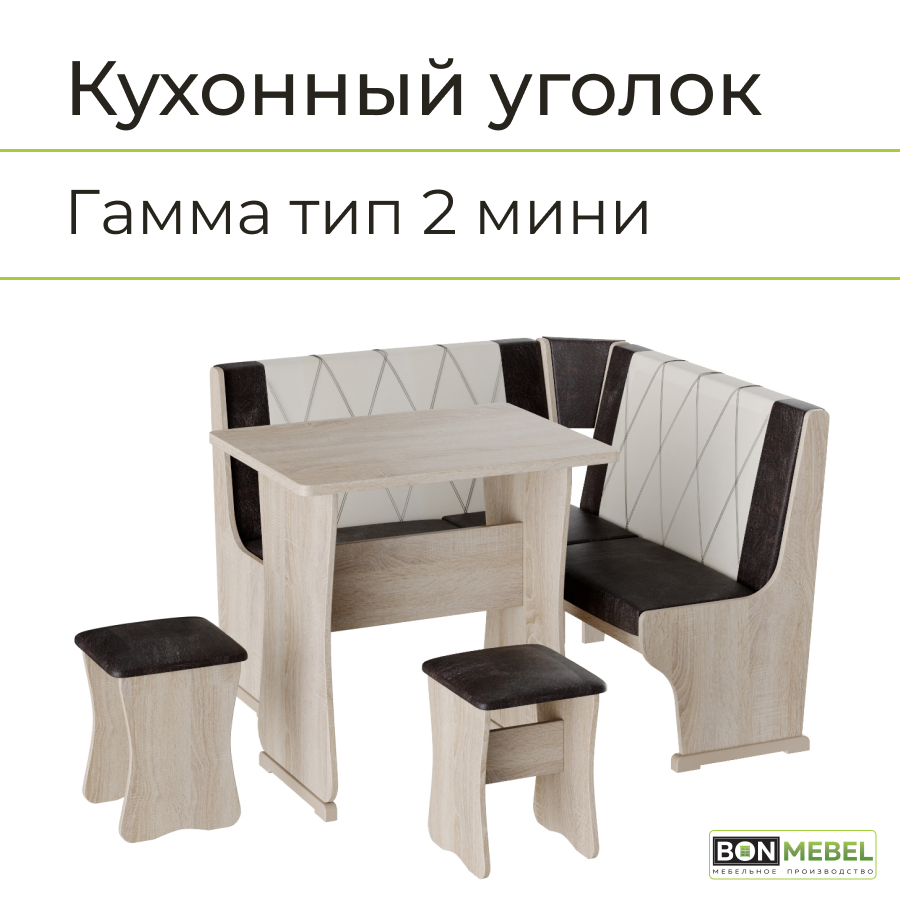 Кухонный уголок Гамма Тип 2 Мини Дуб Сонома/КЗ Шоколад/Бежевый интересное:
