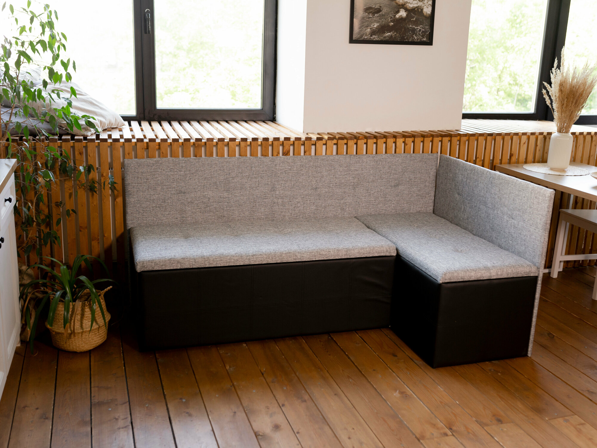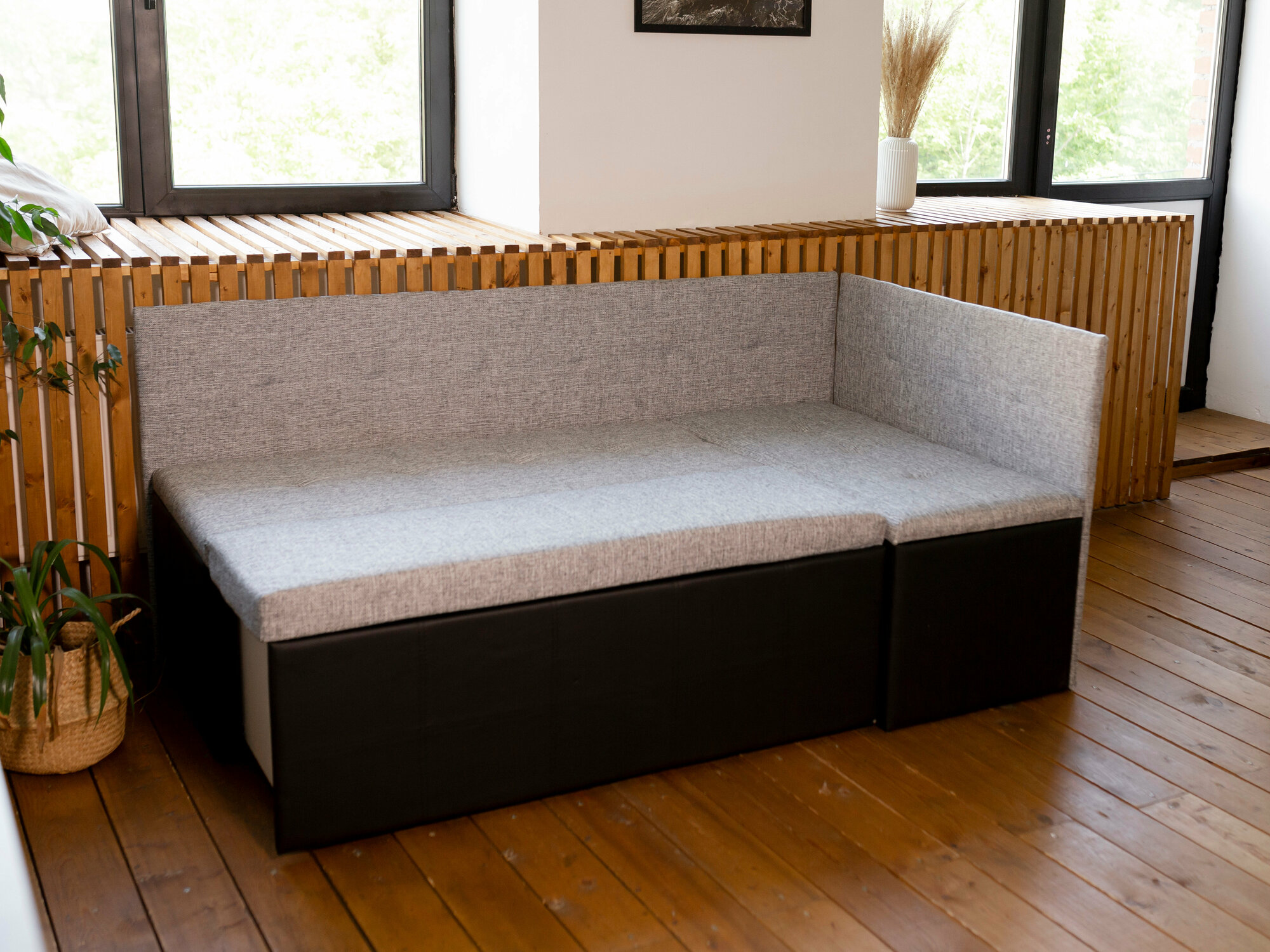 Кухонный уголок MF-SOFA "Домино", текстиль, серый, черный, 180х100 см, 4 персоны