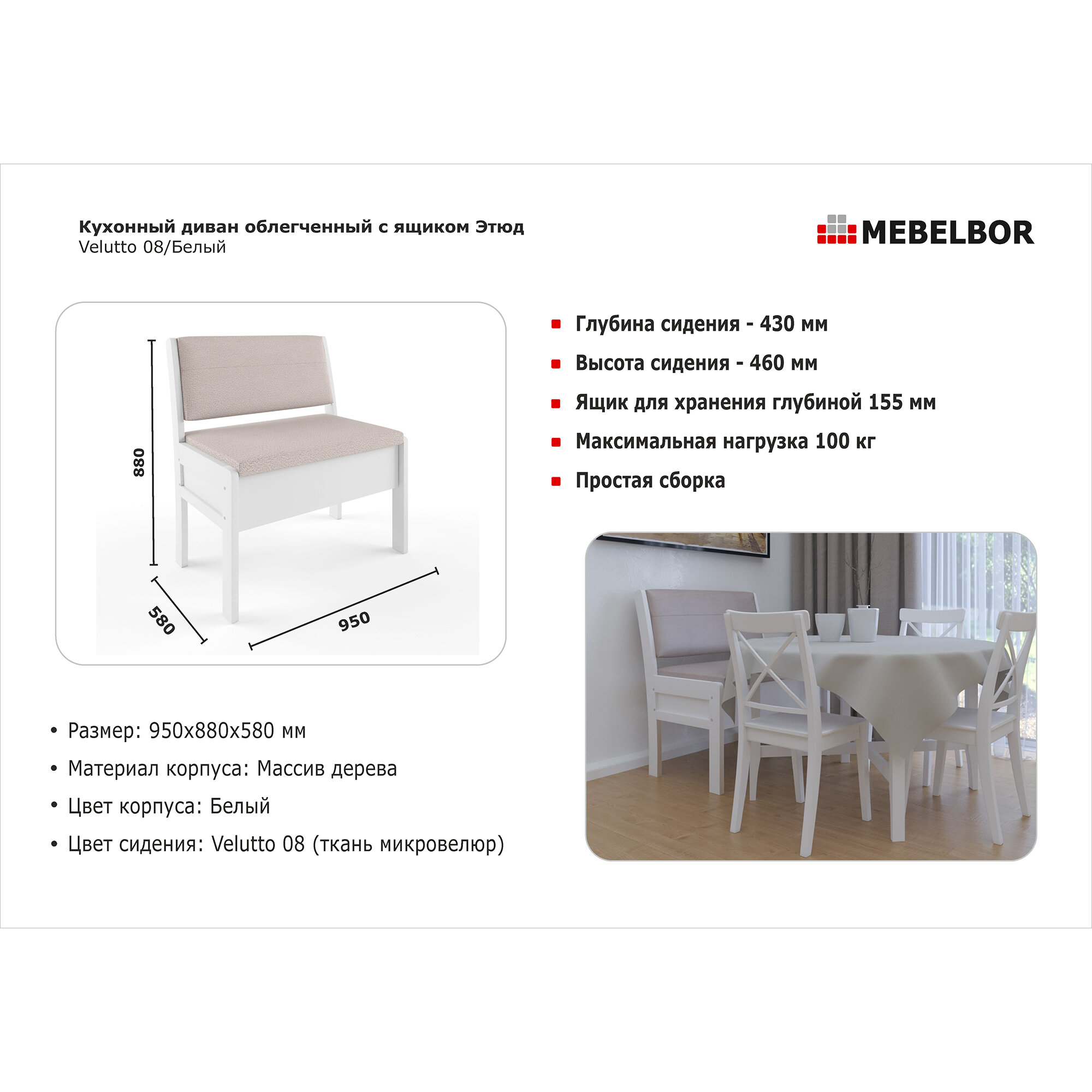 Ниже Вы можете прочитать отзывы на Кухонный диван Боровичи-мебель Этюд облегченный 940 с ящиком Velutto 08/Белый 97698, ознакомится с подробными характеристиками, посмотреть интересные обзоры и фотографии на Кухонный диван Боровичи-мебель Этюд облегченный 940 с ящиком Velutto 08/Белый 97698.