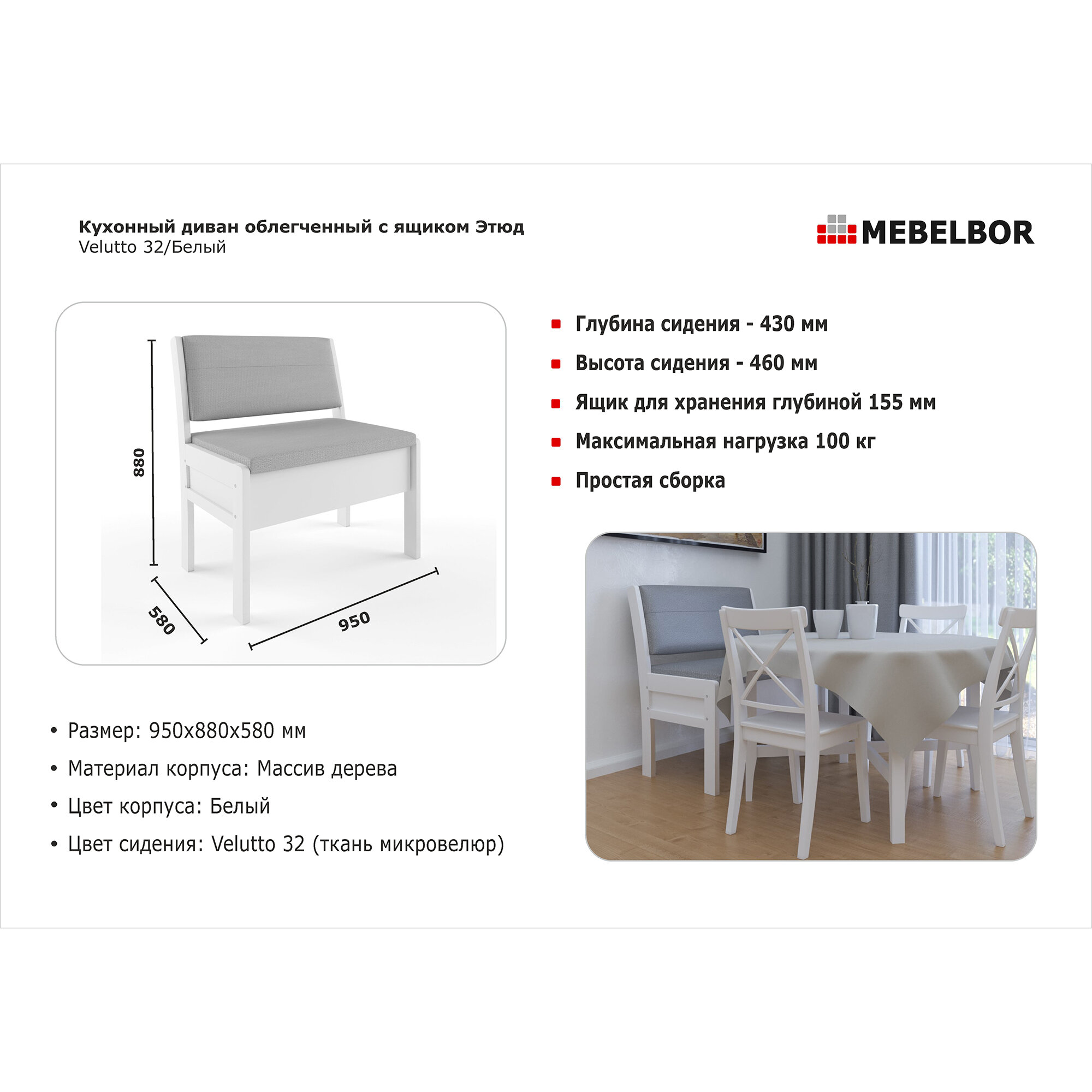 Ниже Вы можете прочитать отзывы на Кухонный диван Боровичи-мебель Этюд облегченный 940 с ящиком Velutto 32/Белый 97698, ознакомится с подробными характеристиками, посмотреть интересные обзоры и фотографии на Кухонный диван Боровичи-мебель Этюд облегченный 940 с ящиком Velutto 32/Белый 97698.