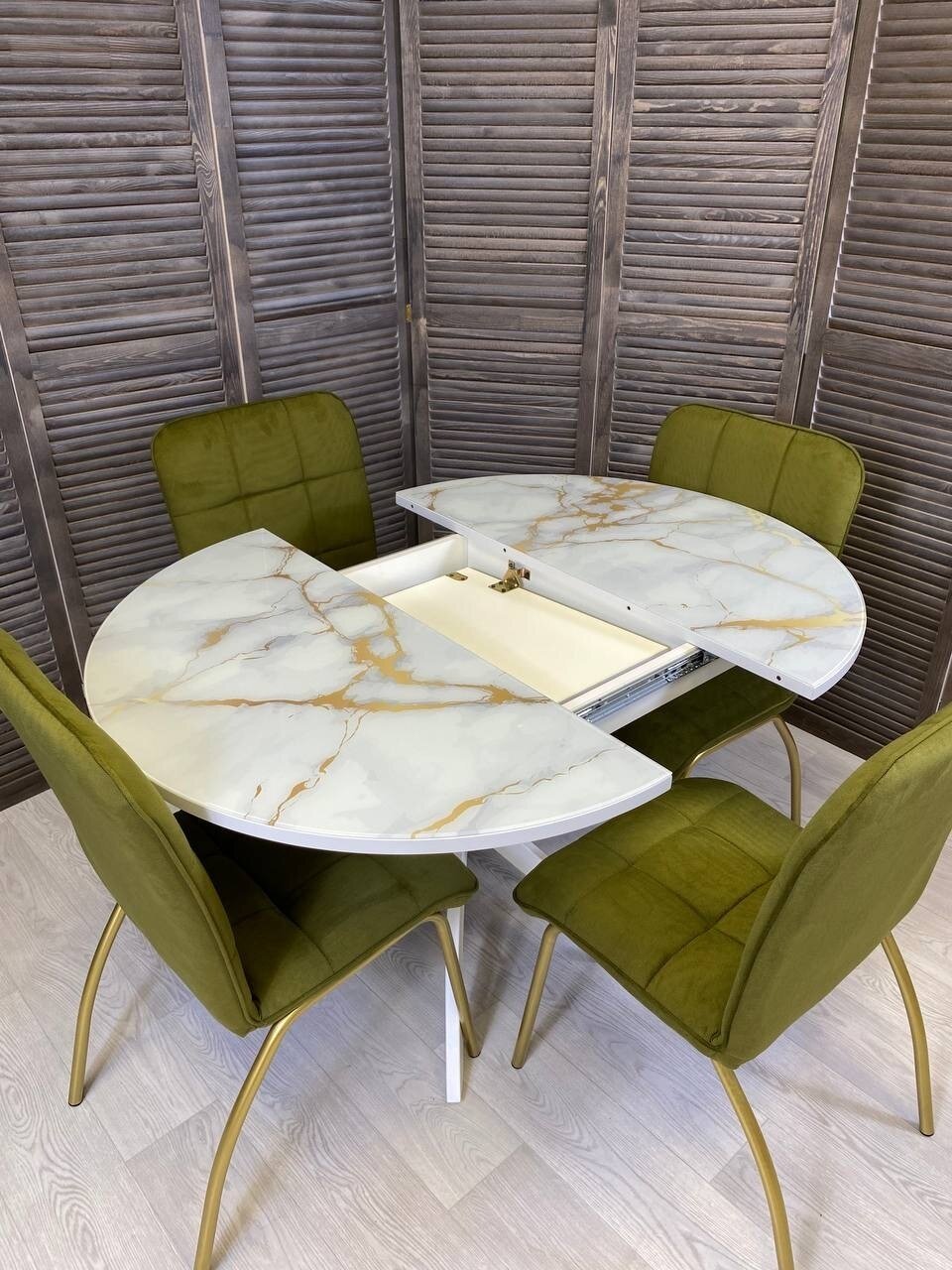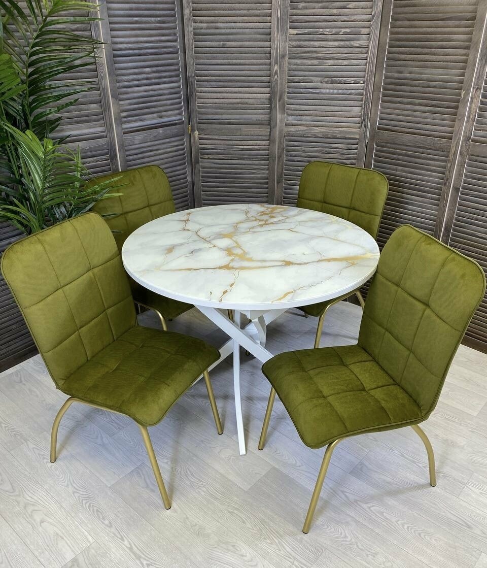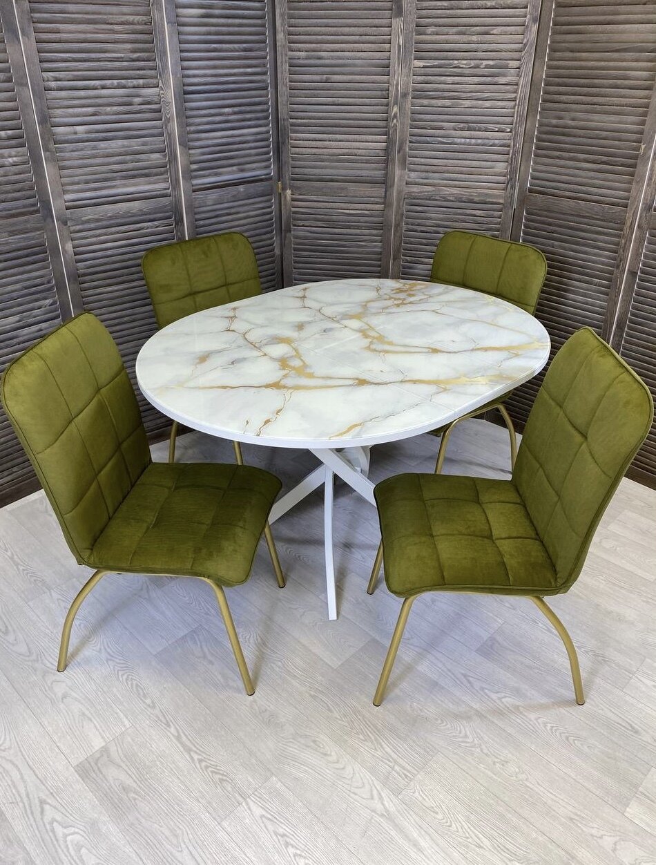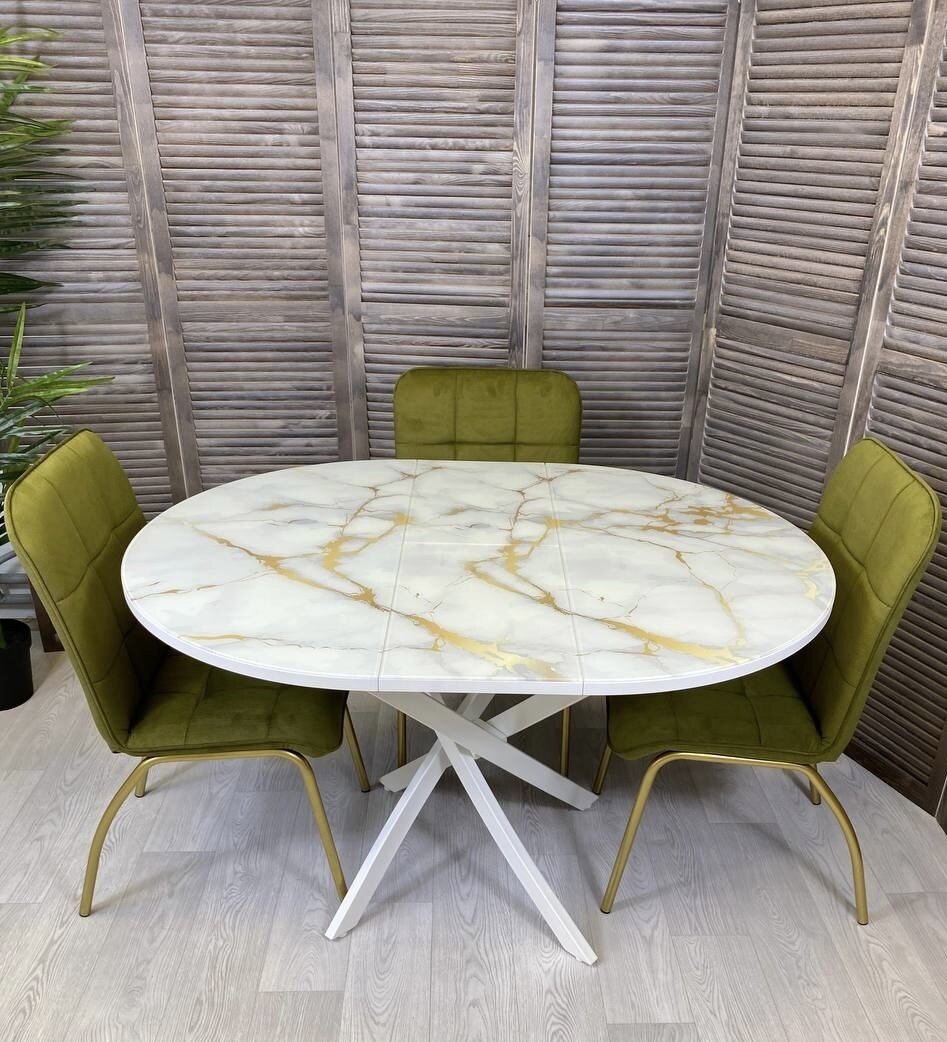 Стол кухонный круглый, раздвижной, стеклянный, Золотой мрамор, стулья для кухни комплект 4 шт