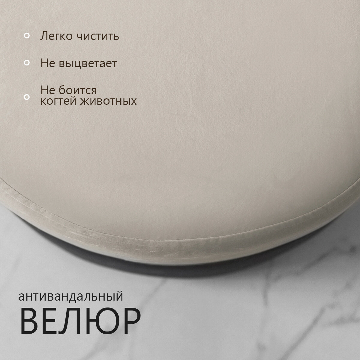 Пуф круглый, мягкий велюр, для спальни и прихожей, светло-коричнеый, 35х35х40 см интересное: