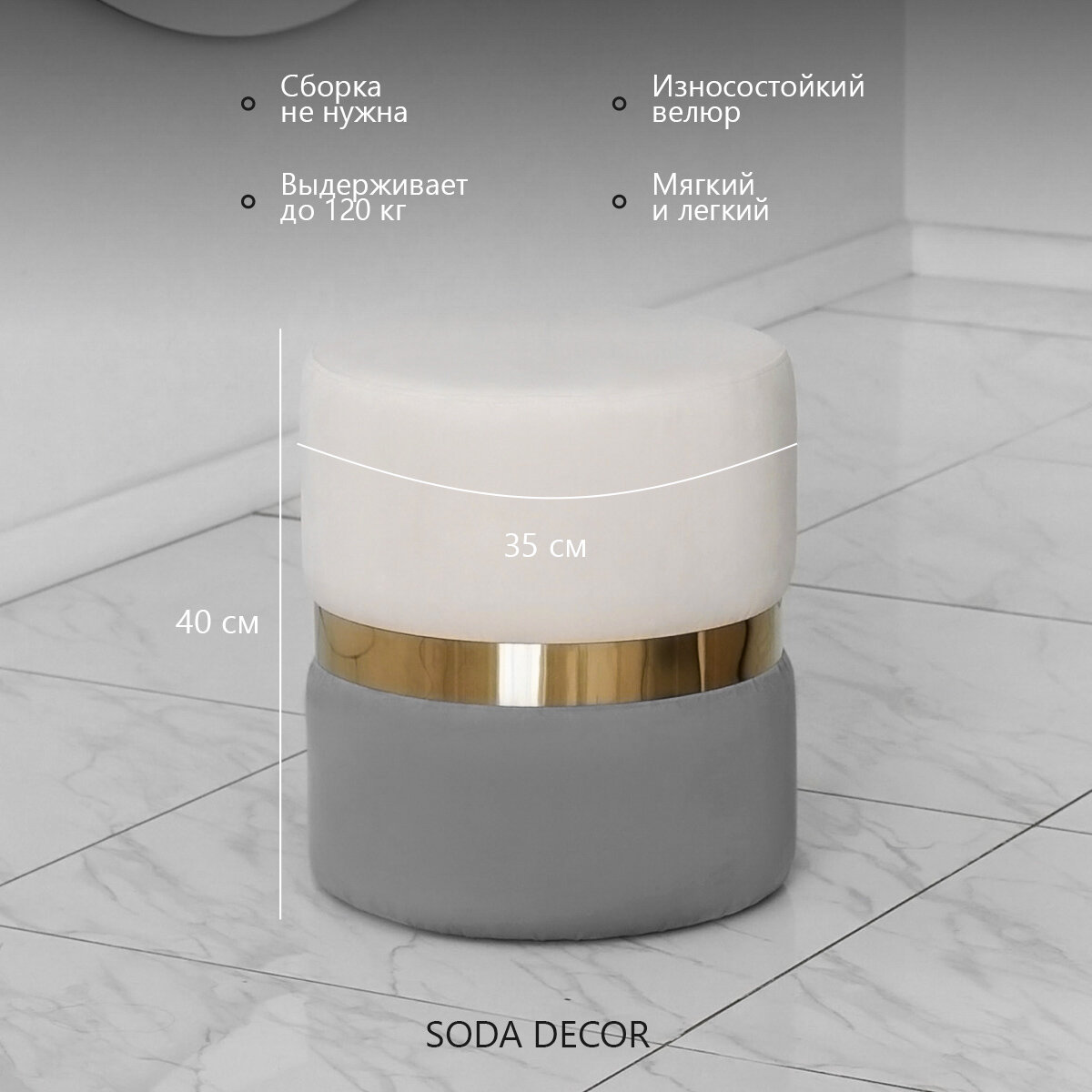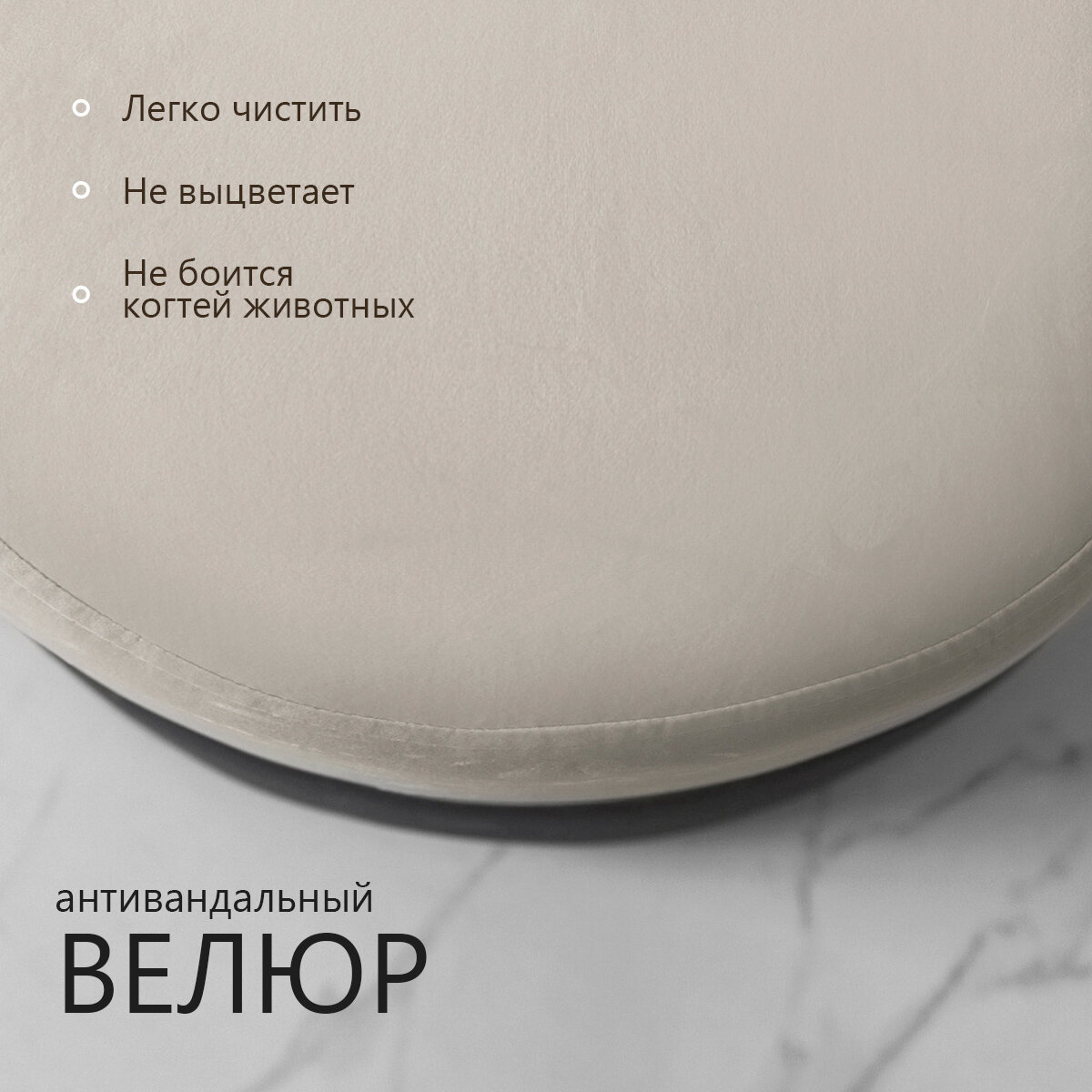 Пуф круглый, мягкий велюр, для спальни и прихожей, светло-серый, 35х35х40 см интересное: