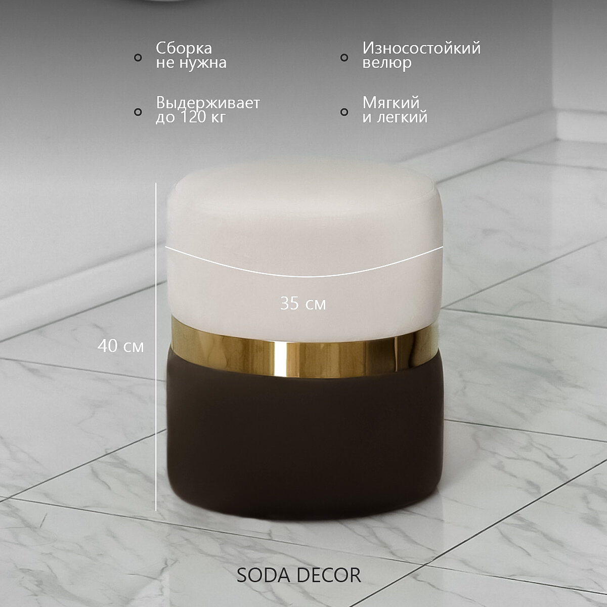 Пуф круглый, мягкий велюр, для спальни и прихожей, светло-коричнеый, 35х35х40 см