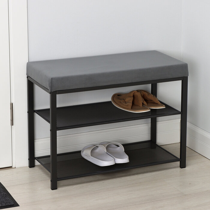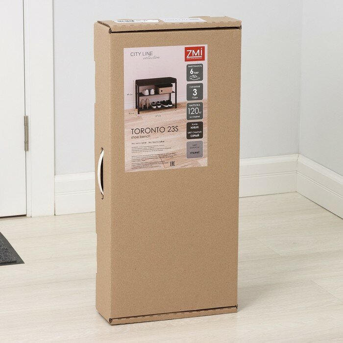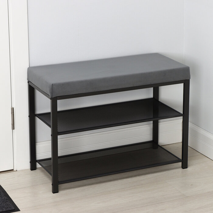 Купить Банкетка для обуви ЗМИ Торонто 23S, 2 полки с мягким сиденьем, 67х30х49см, каркас графит БТ23СГрС