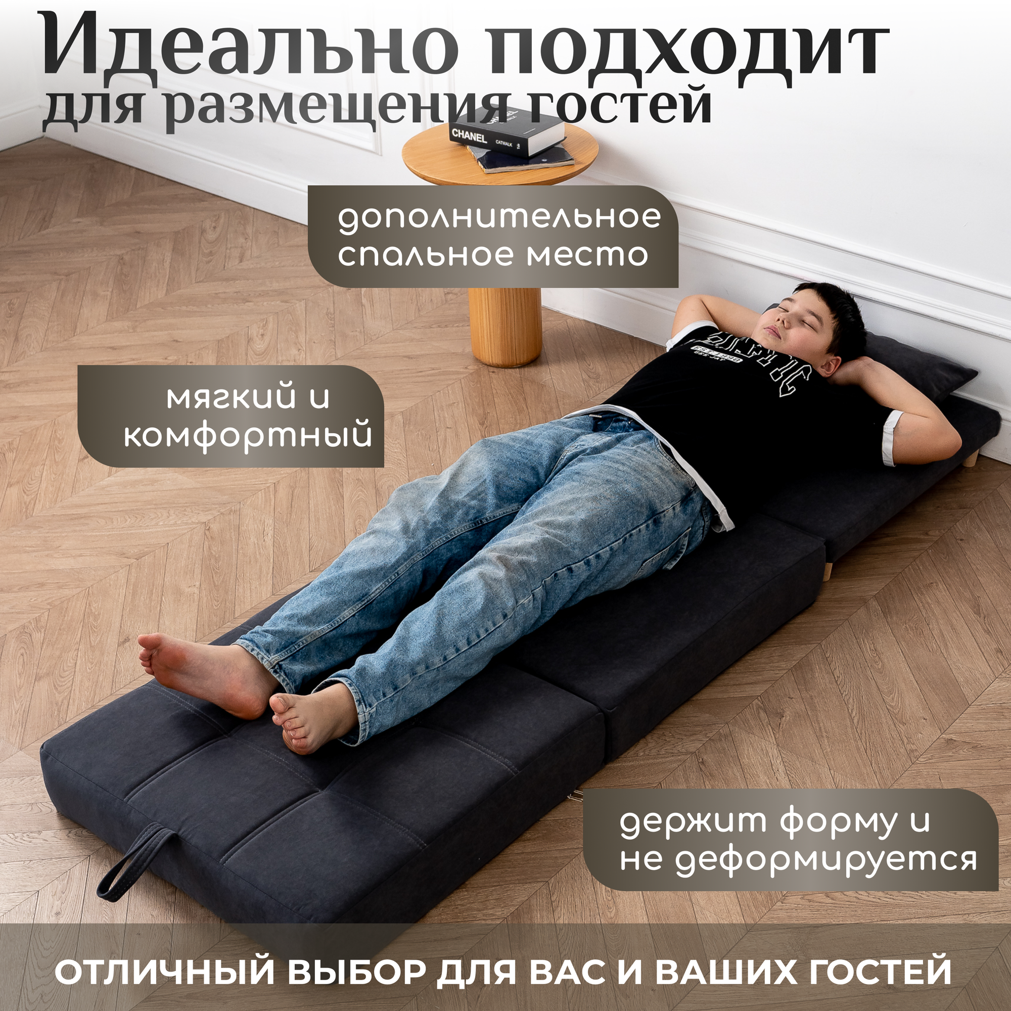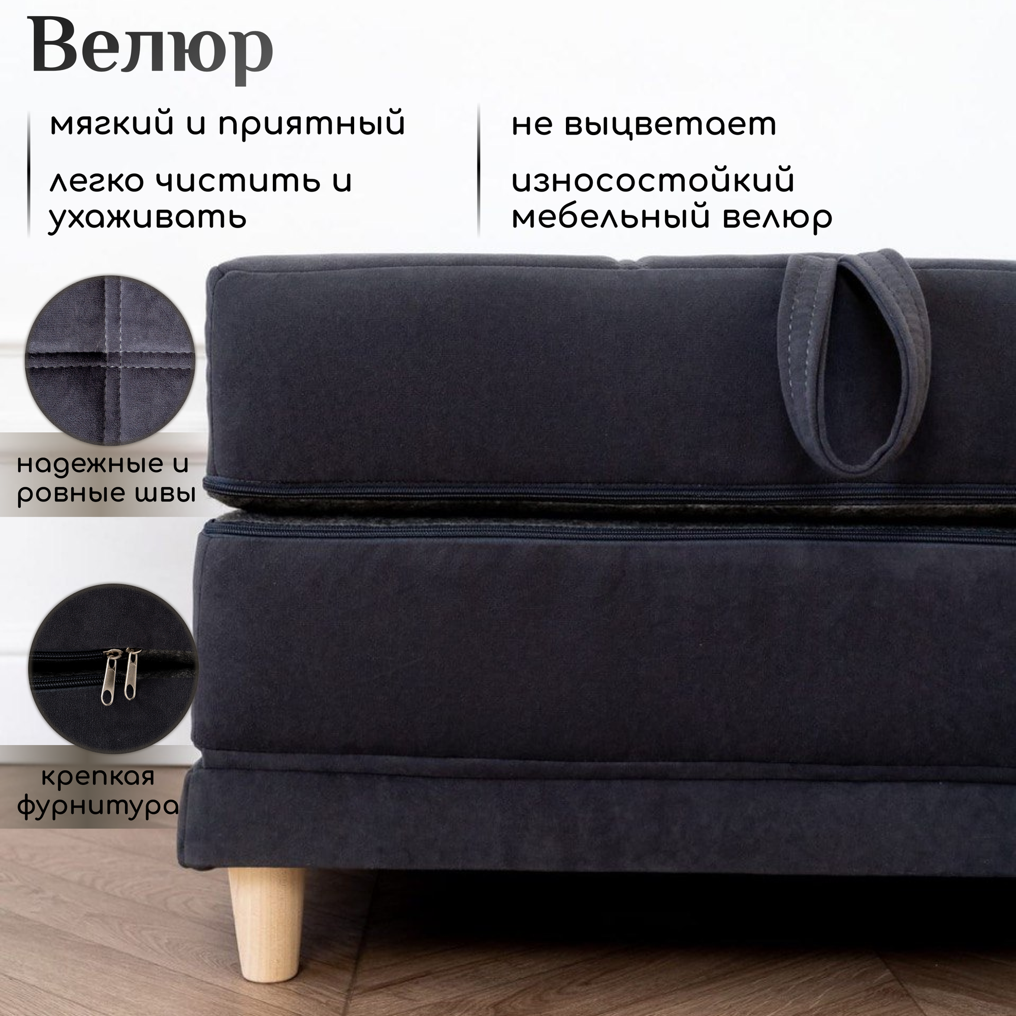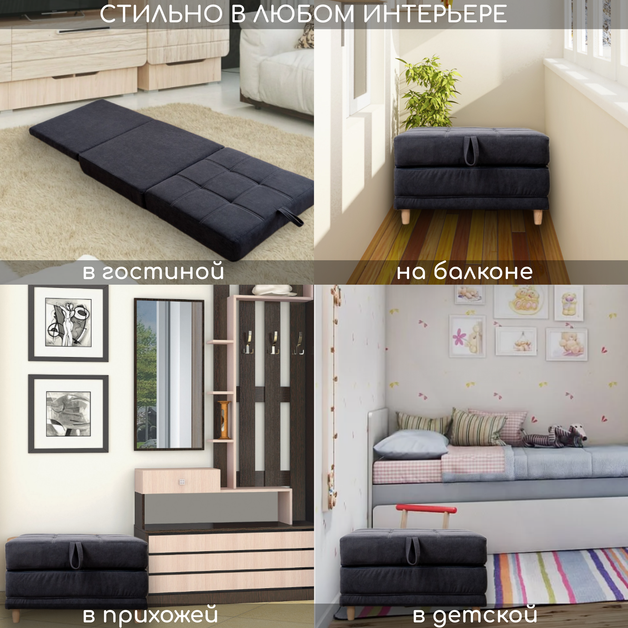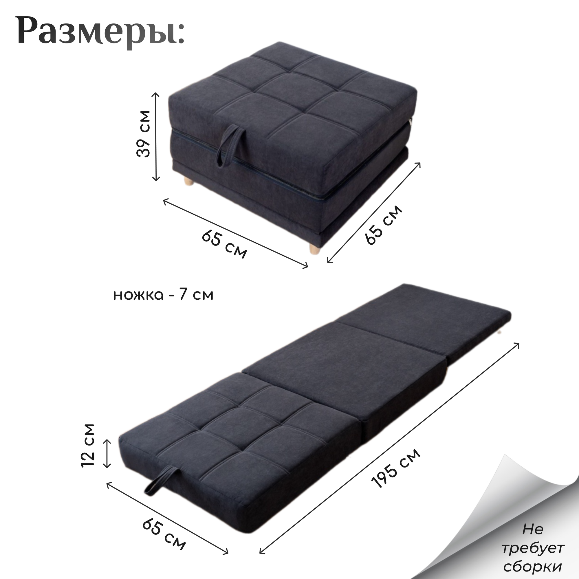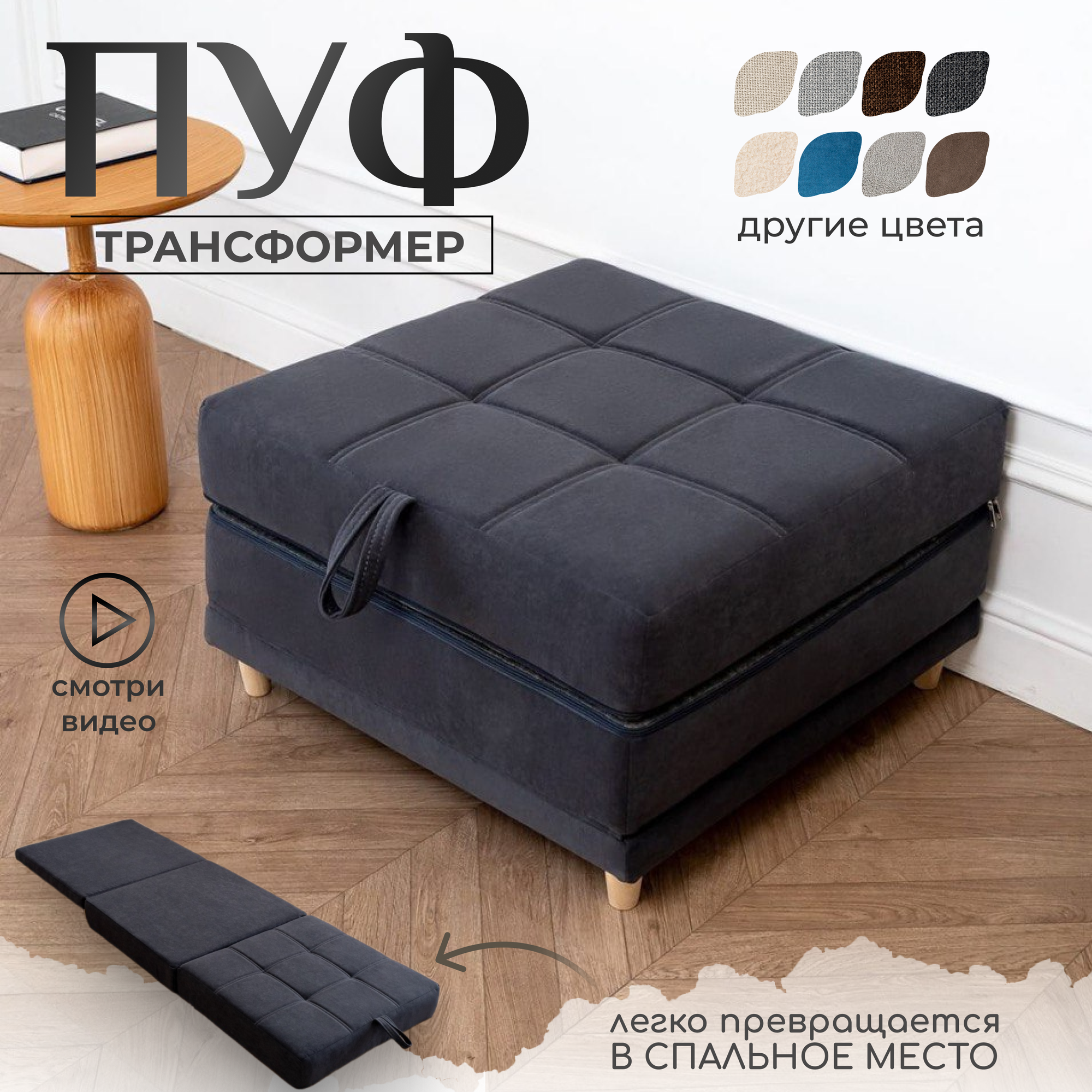 Пуф трансформер кровать раскладушка темно-серый велюр интересное: