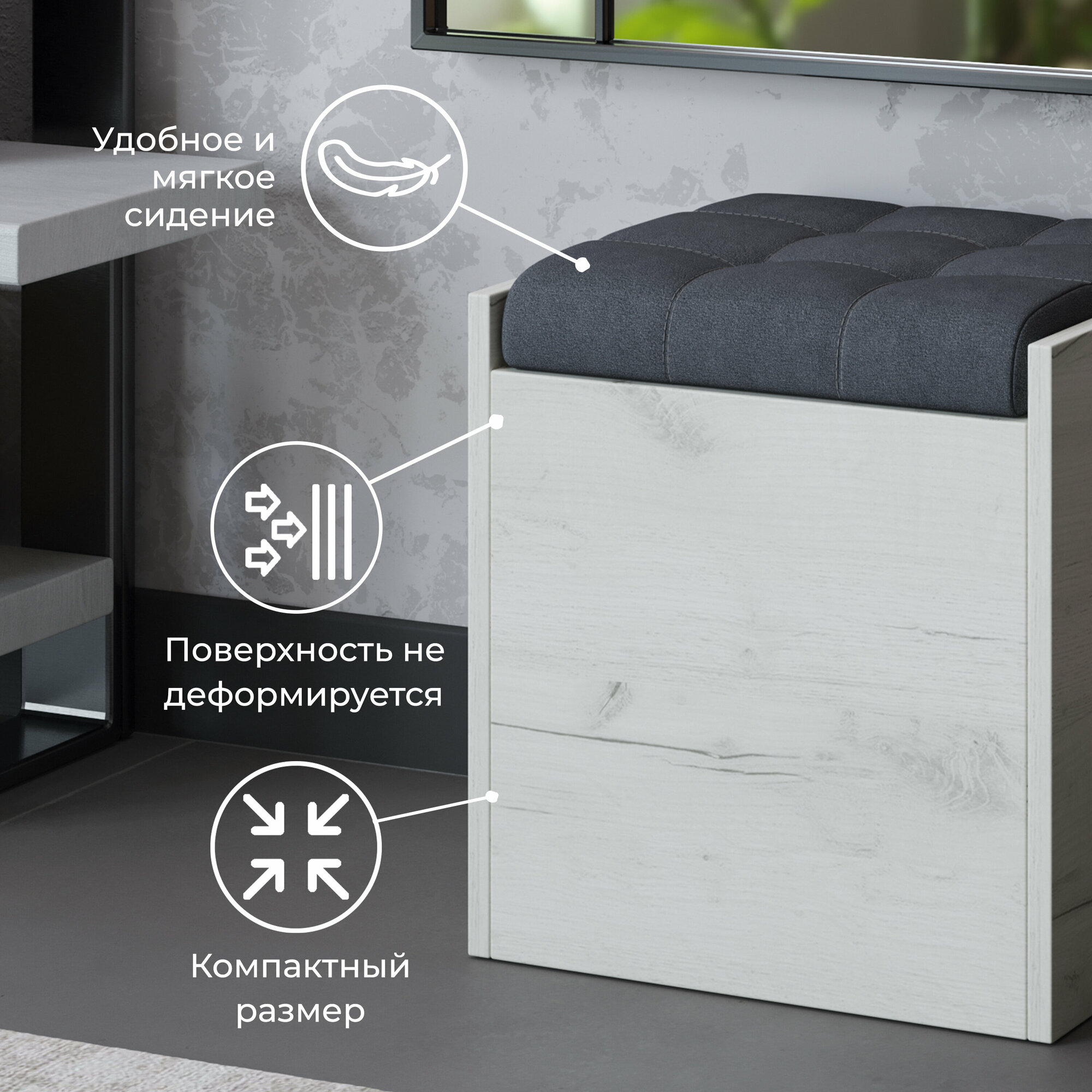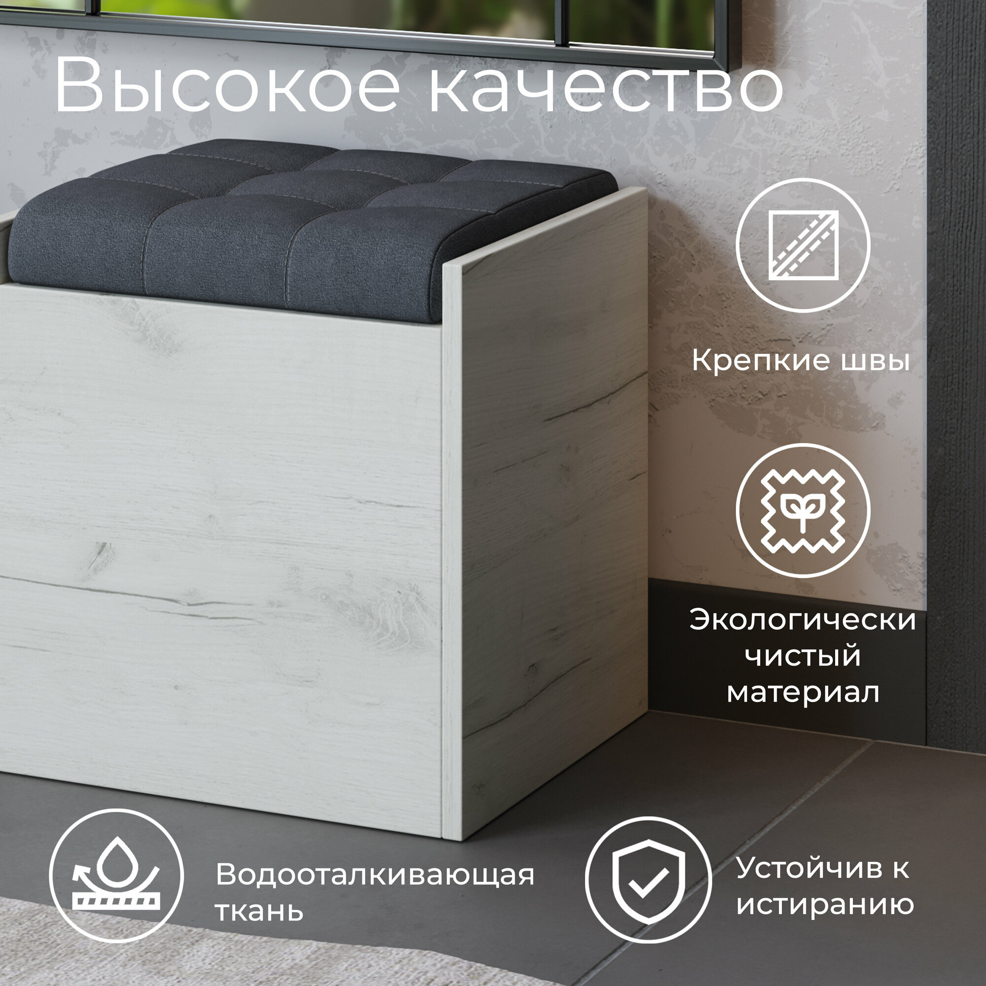 Купить Пуф банкетка с ящиком серый (ВхШхГ) 44х39х35 см, Форест