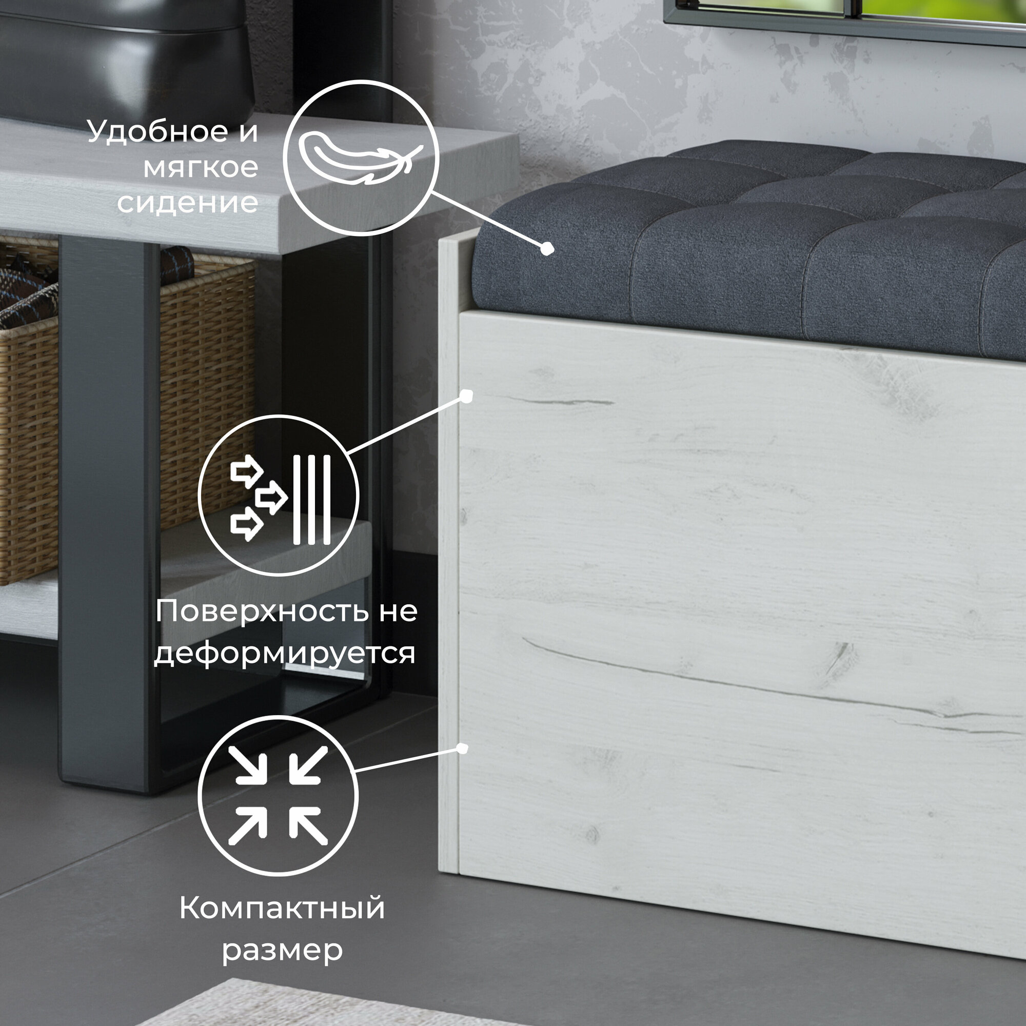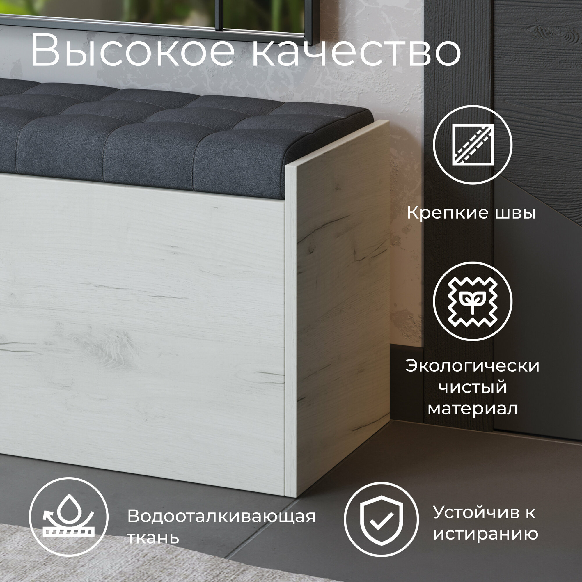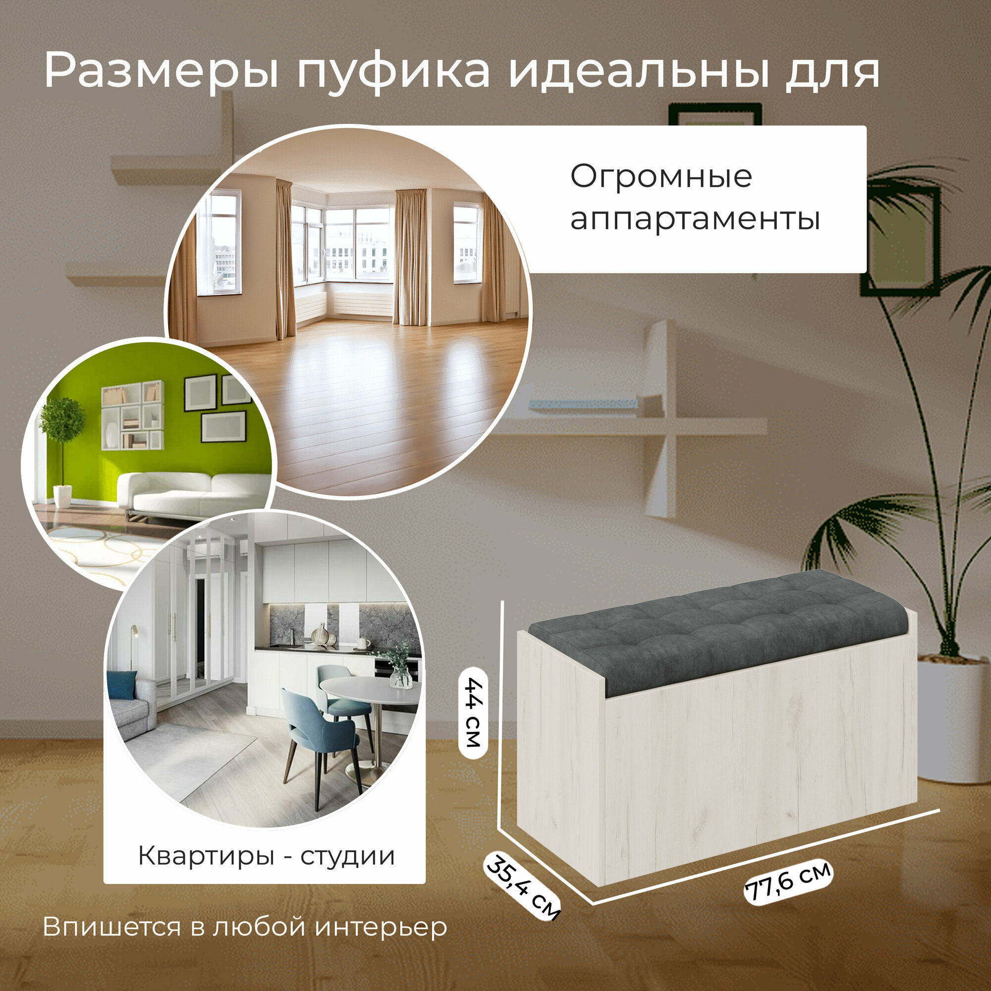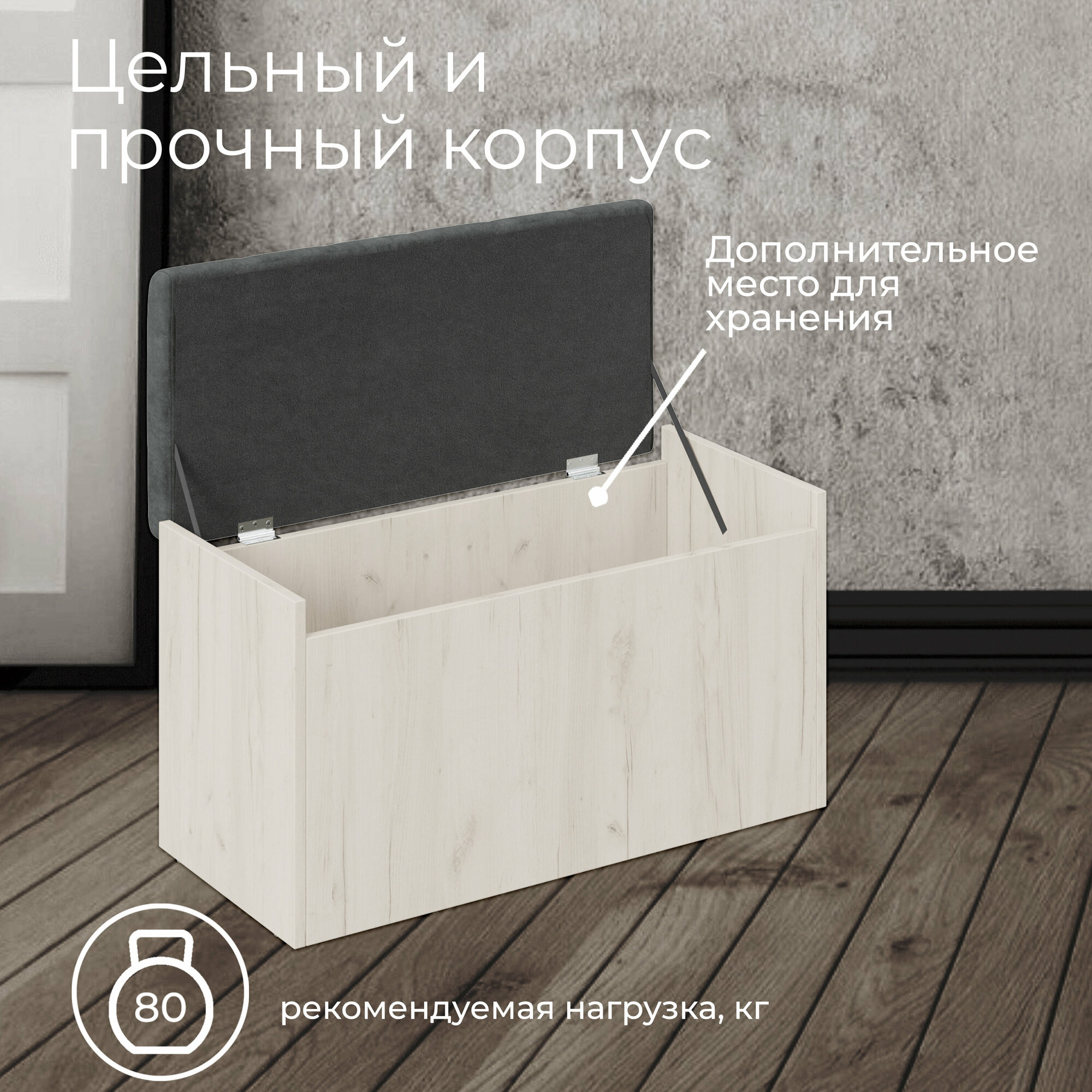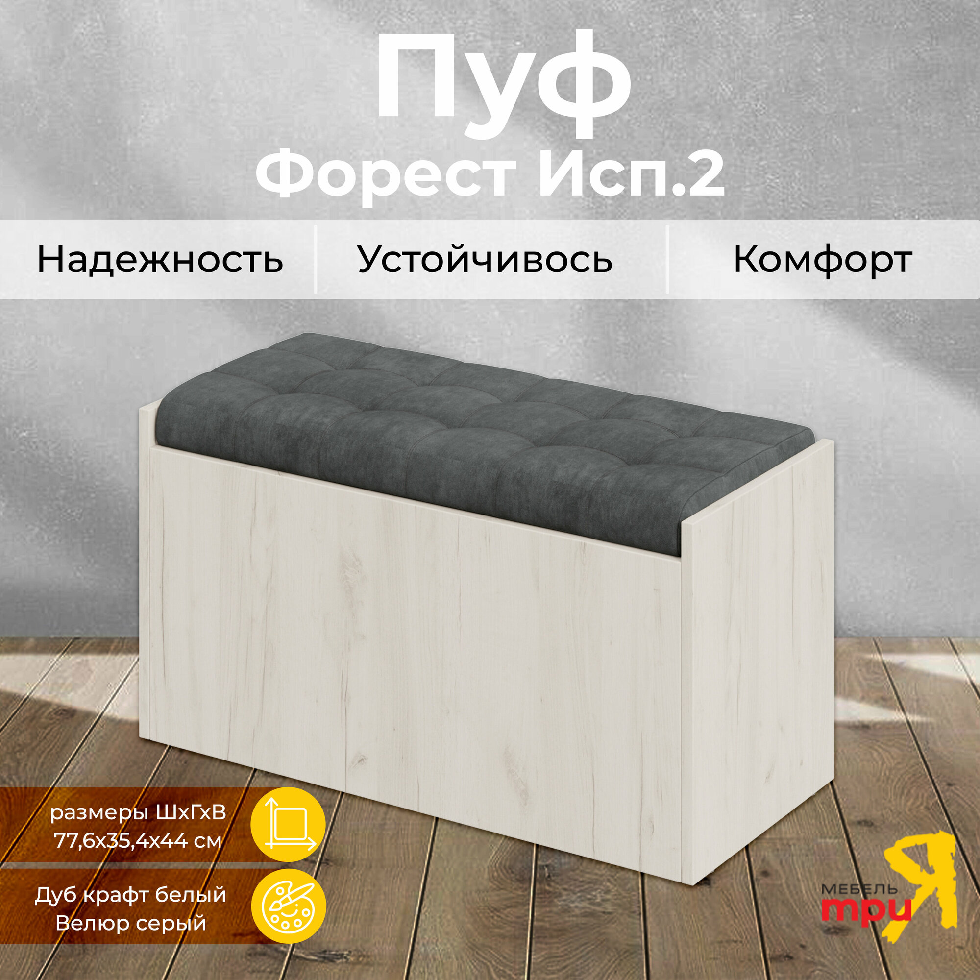 Пуф банкетка с ящиком серый (ВхШхГ) 44х78х35 см, Форест исп2 интересное: