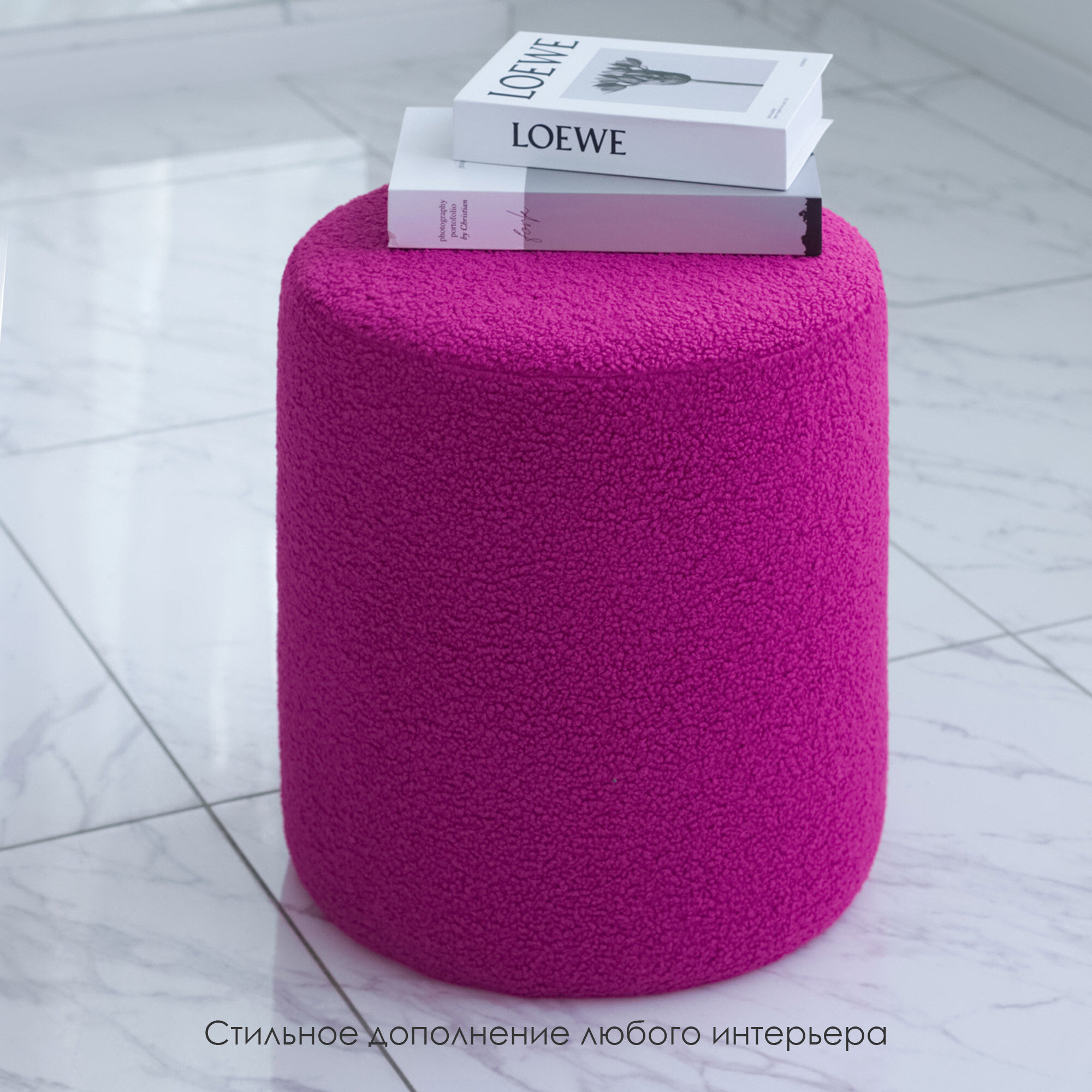 Пуфик в прихожую и спальню, для туалетного столоки, букле, барашек, soda decor, розовый фуксия