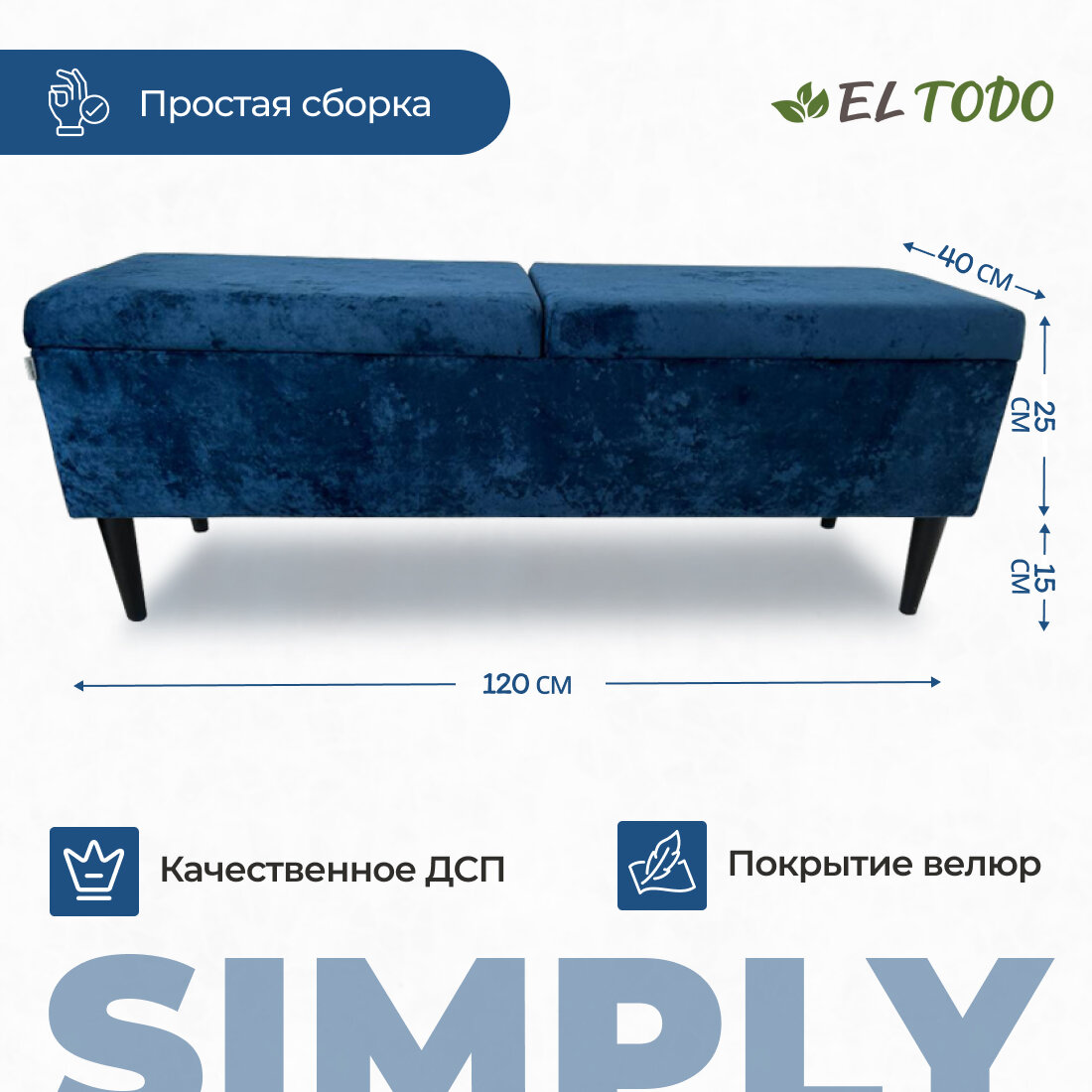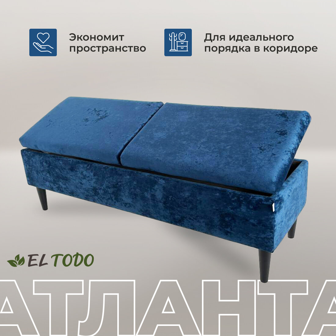 Пуфик "Банкетка с ящиком" 120*40*40, синий, мягкий, ножки Атланта El Todo интересное: