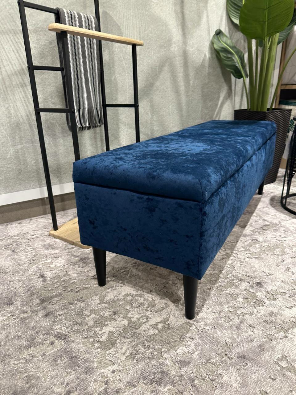 Купить Пуфик "Банкетка с ящиком" 120*40*40, синий, мягкий, ножки Атланта El Todo