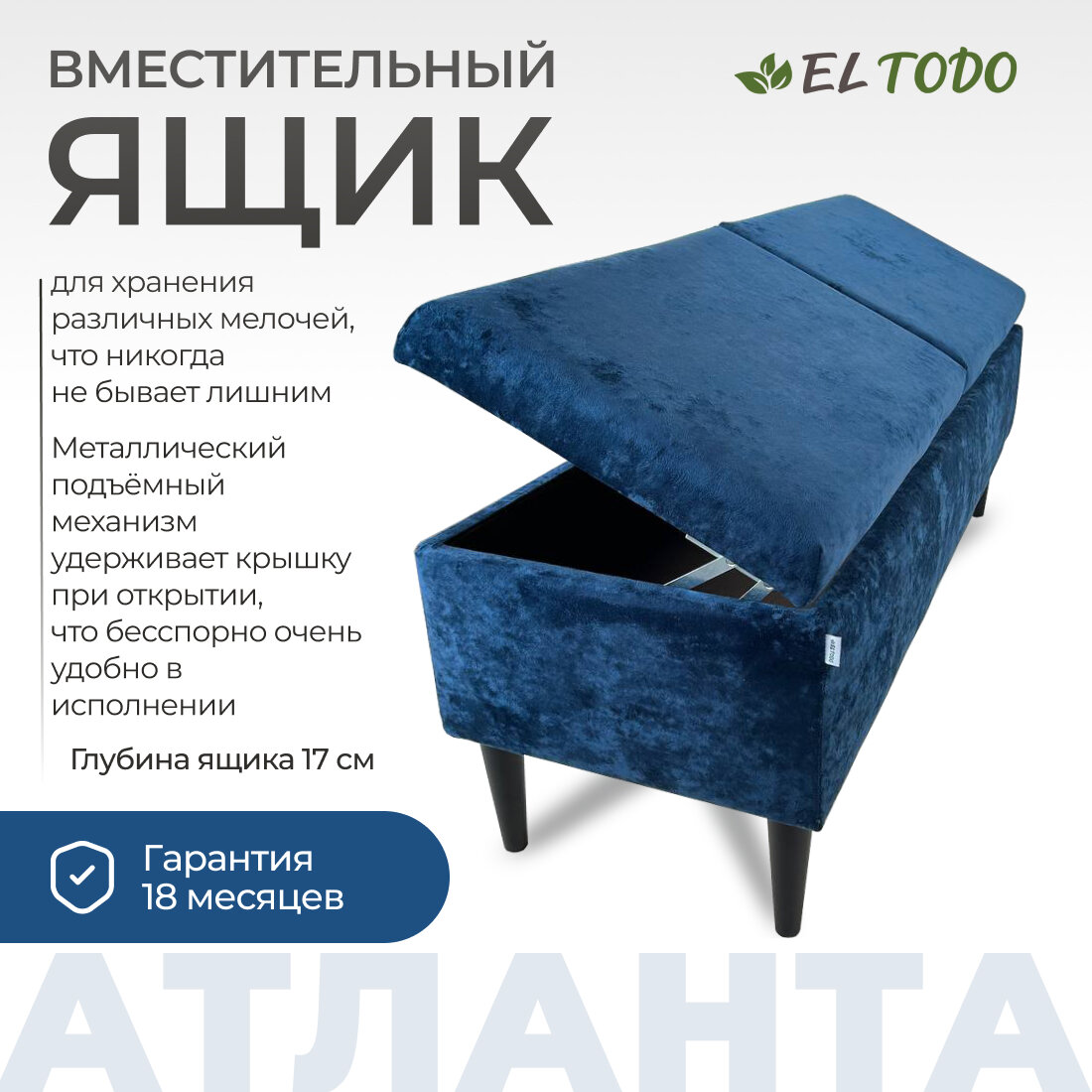 Ниже Вы можете прочитать отзывы на Пуфик "Банкетка с ящиком" 120*40*40, синий, мягкий, ножки Атланта El Todo, ознакомится с подробными характеристиками, посмотреть интересные обзоры и фотографии на Пуфик "Банкетка с ящиком" 120*40*40, синий, мягкий, ножки Атланта El Todo.