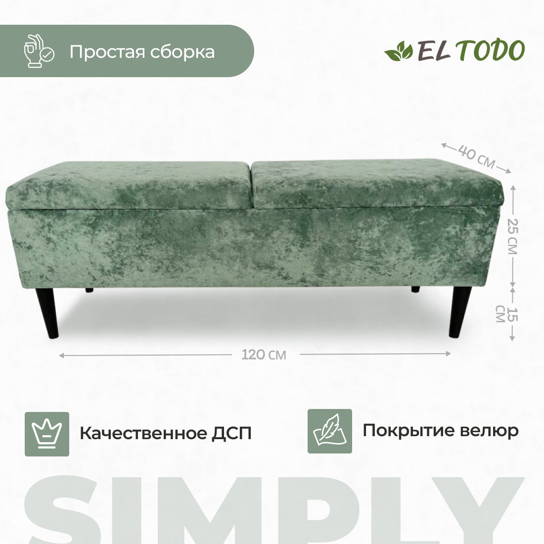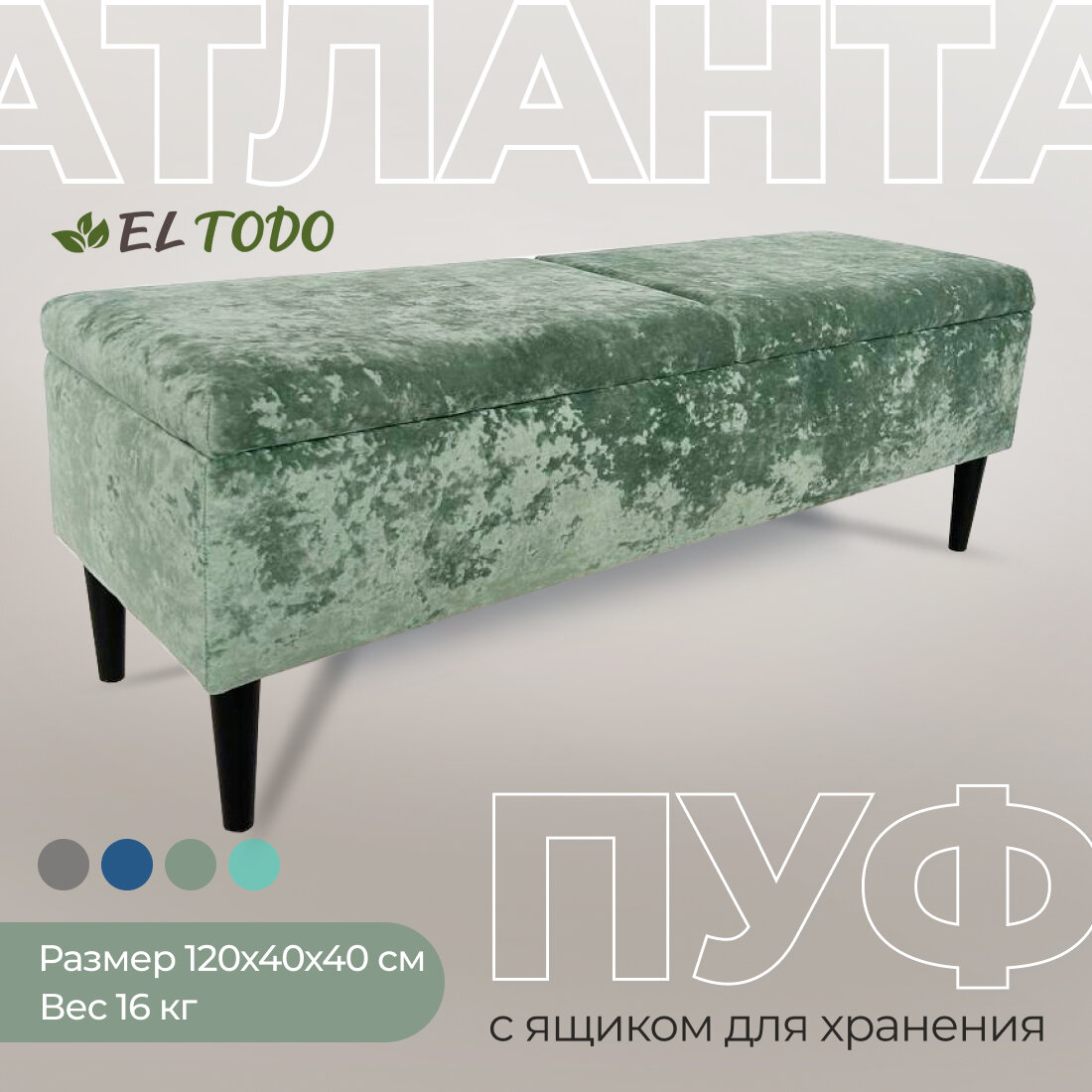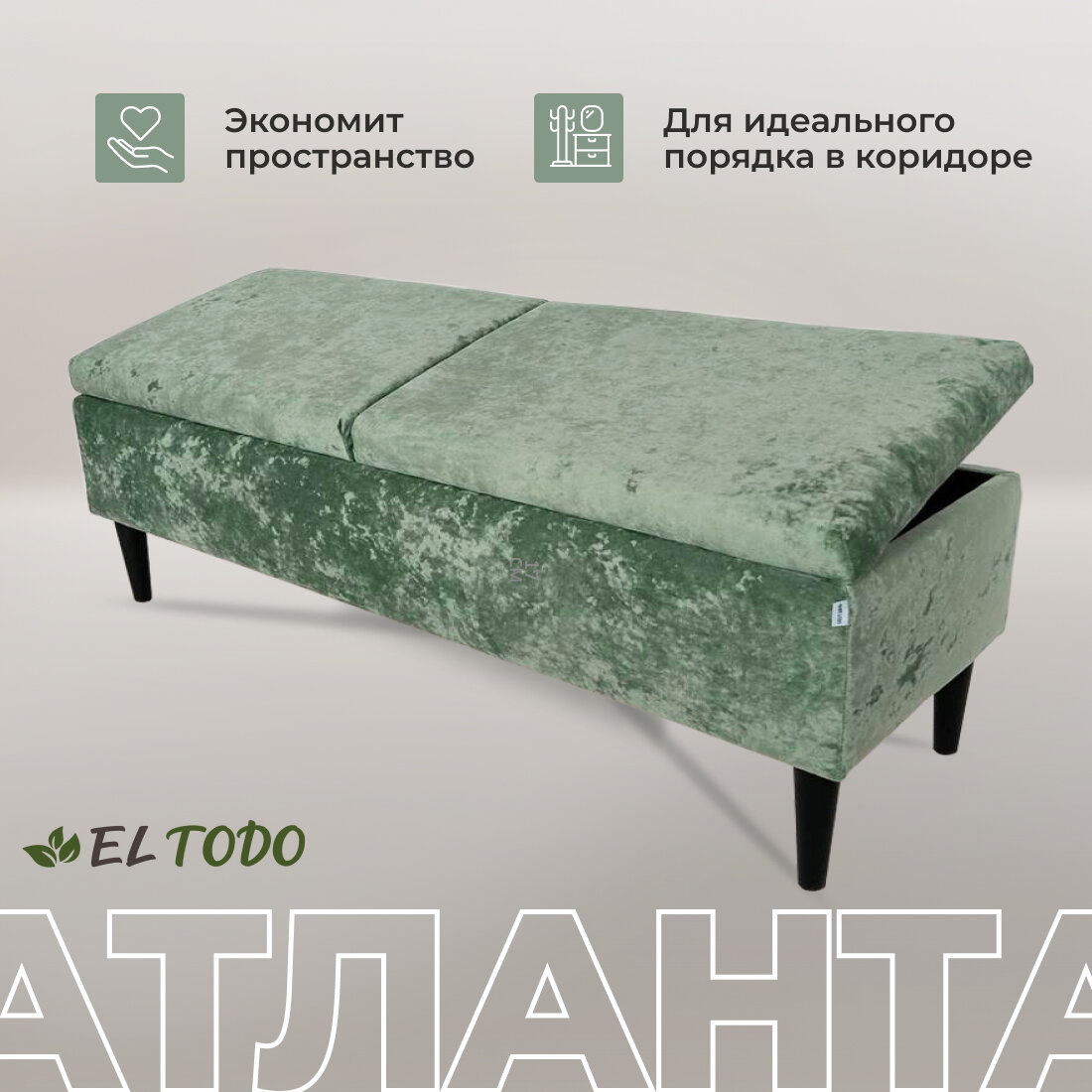 Пуфик в прихожую 120х40х40 см, зеленый, банкетка с ящиком для хранения мягкий на ножках атланта EL TODO интересное: