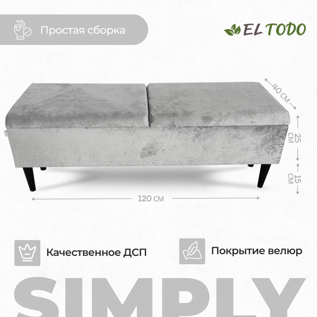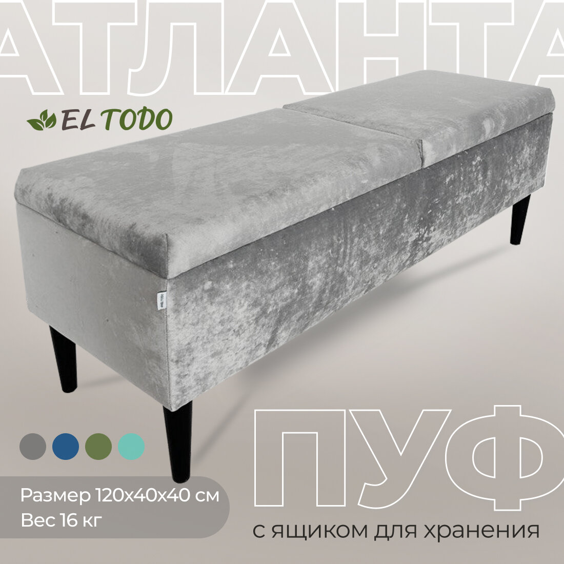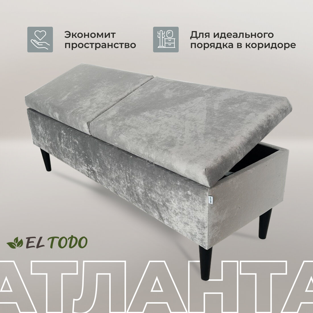 Пуфик "Банкетка с ящиком" 120*40*40, серый, мягкий, ножки Атланта El Todo интересное: