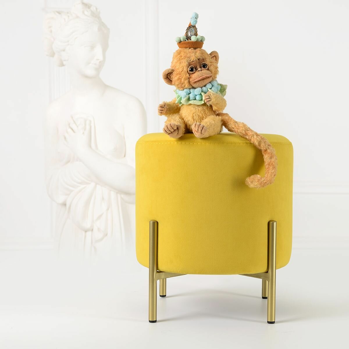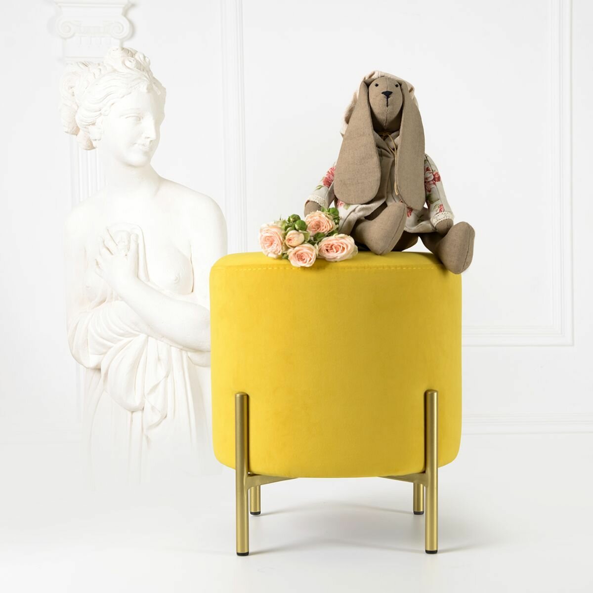 СохранитьПуф. Пуфик круглый SAMOYLOV MEBEL в прихожую. Банкетка для туалетного столика 35*35*40 желтый интересное: