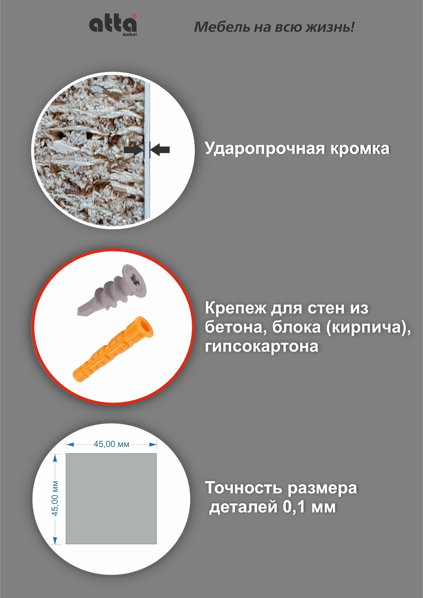 Полка настенная навесная белая для комнаты полочка для книг , atta mebel, 115,2 х 55 х 20 см, 1 шт. интересное: