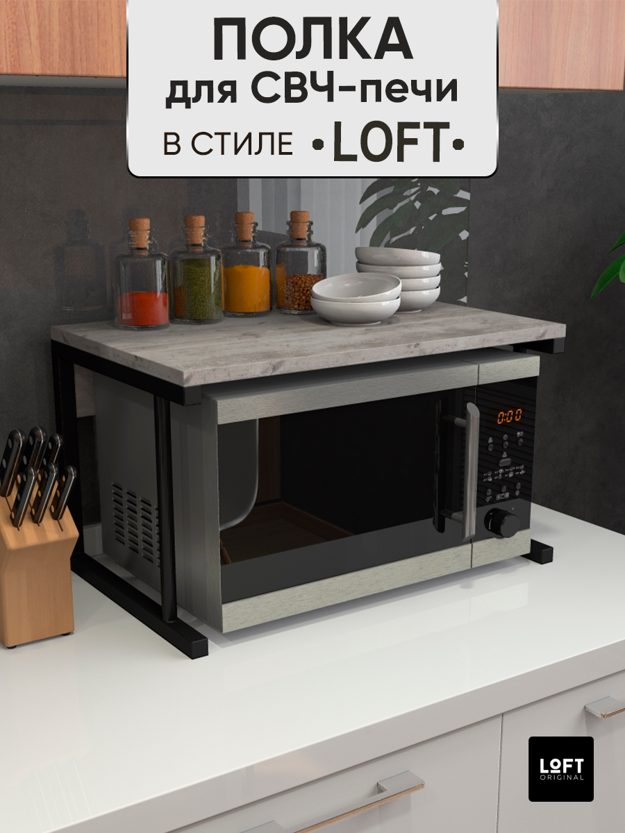 Купить Полка для микроволновки настольная лофт серая /Этажерка для ванной /Держатель для специй и круп / 54 см х 35 см х 31,6 см