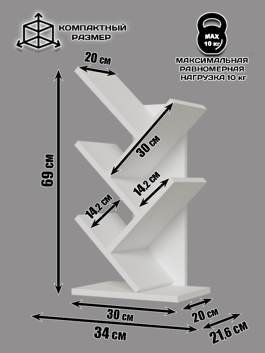 Полка напольная для книг, из материала ЛДСП, 69 см, белого цвета