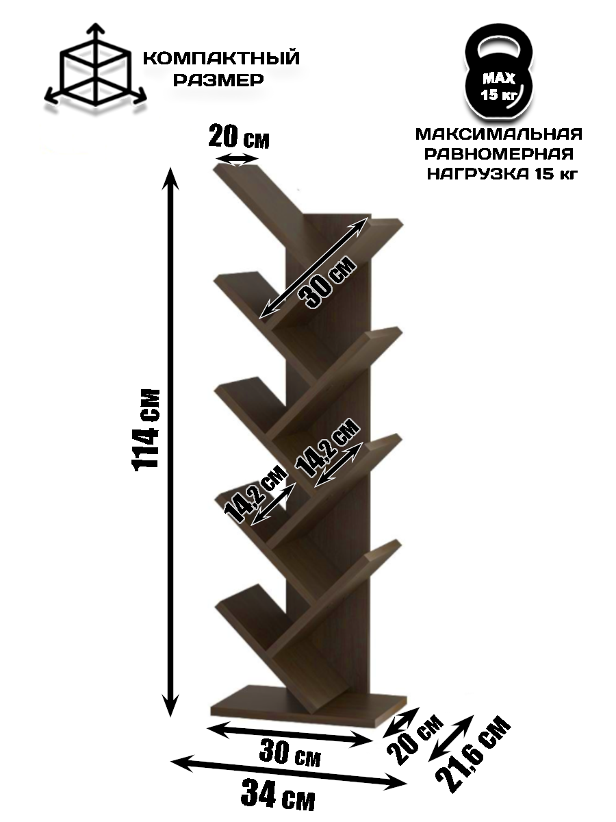 СохранитьПолка напольная деревянная для книг, 114 см, венге интересное: