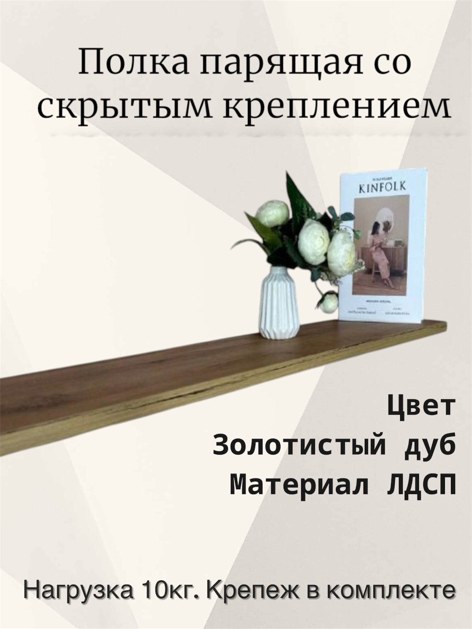 СохранитьПолка парящая настенная из ЛДСП со скрытым креплением, цвет дуб золотой, размер 80х20х1,8 см. интересное: