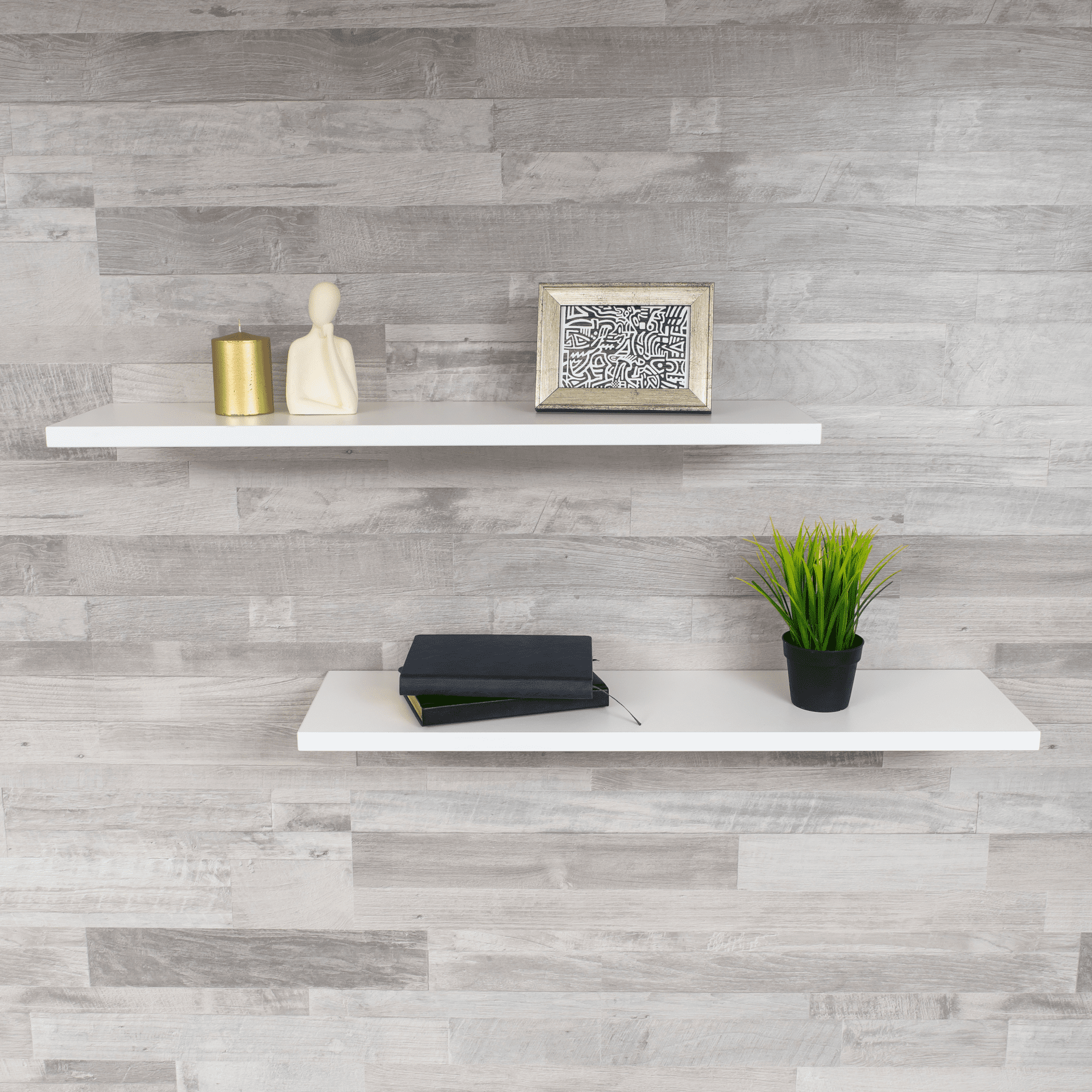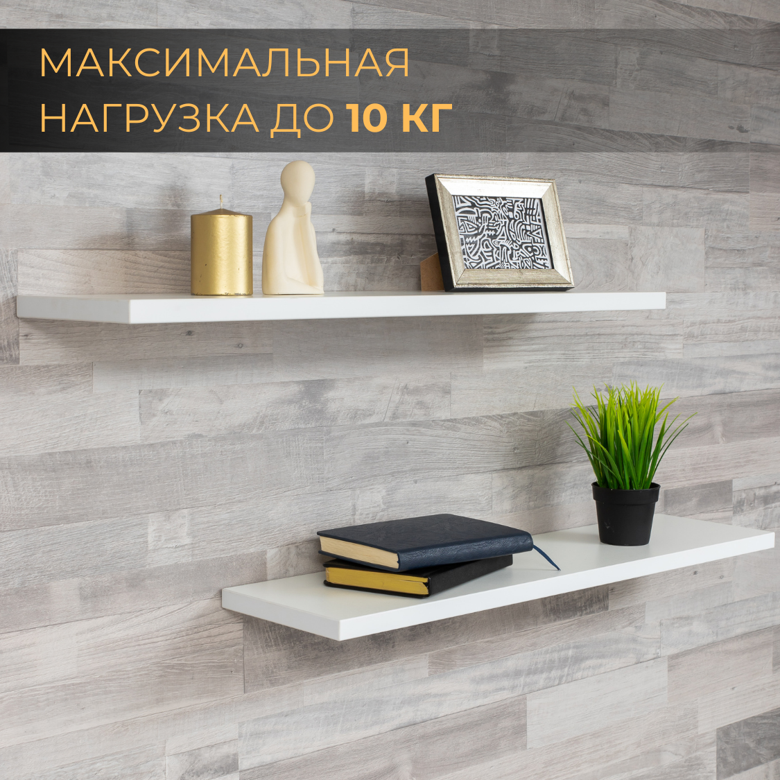 Купить Полка настенная прямая навесная, белая, 2шт, белый, 80х20