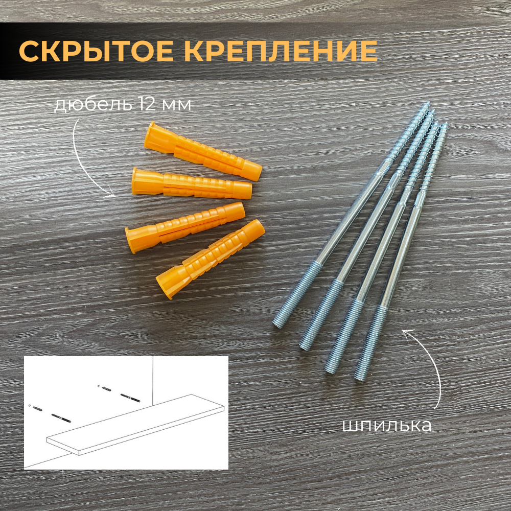 Полка настенная прямая навесная, со скрытым монтажом 2 шт Дуб крафт золотой 60х13 см
