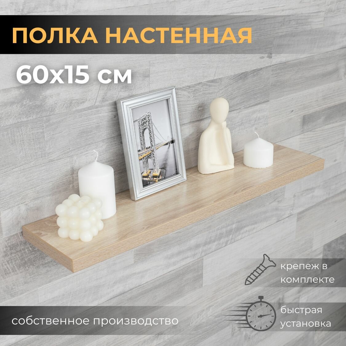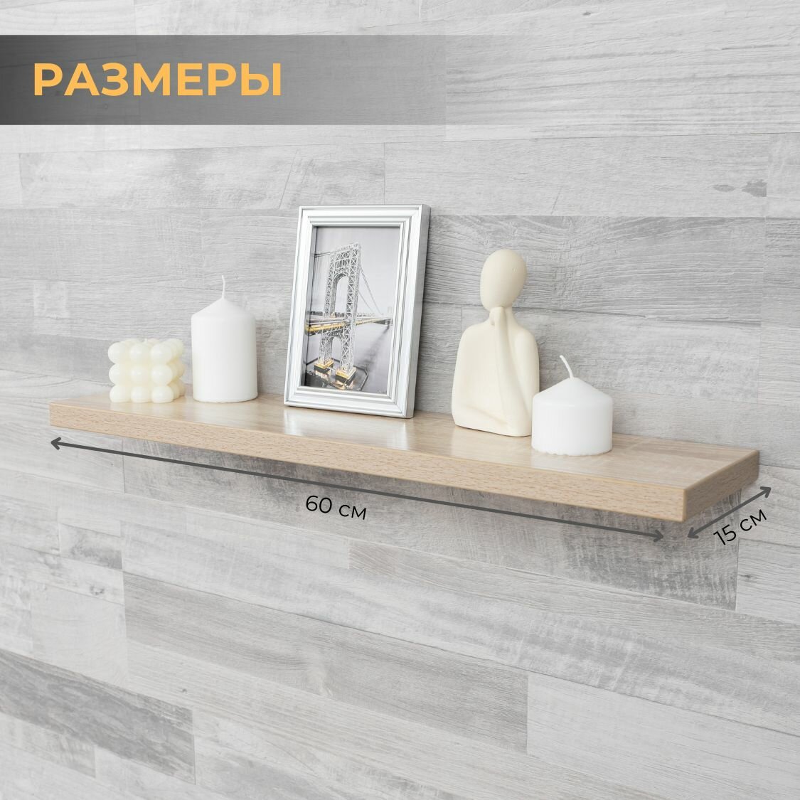 Полка настенная прямая навесная, со скрытым монтажом 2 шт, ясень светлый, 60х15