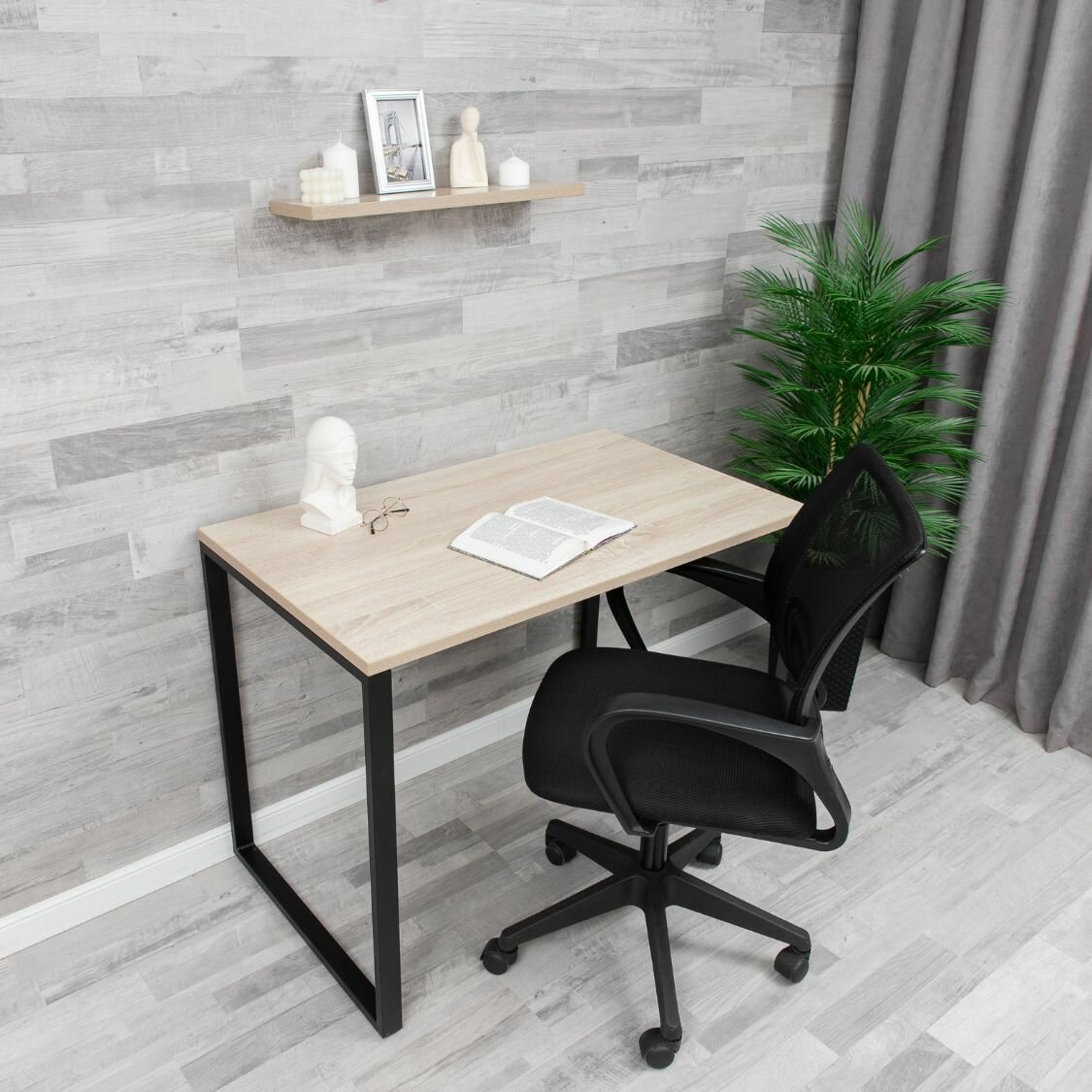 Стол компьютерный Loft с пятью полками, столешница цвета платины из массива сосны 40 мм и черные металлические Z-образные ножки, 100х80х148 см