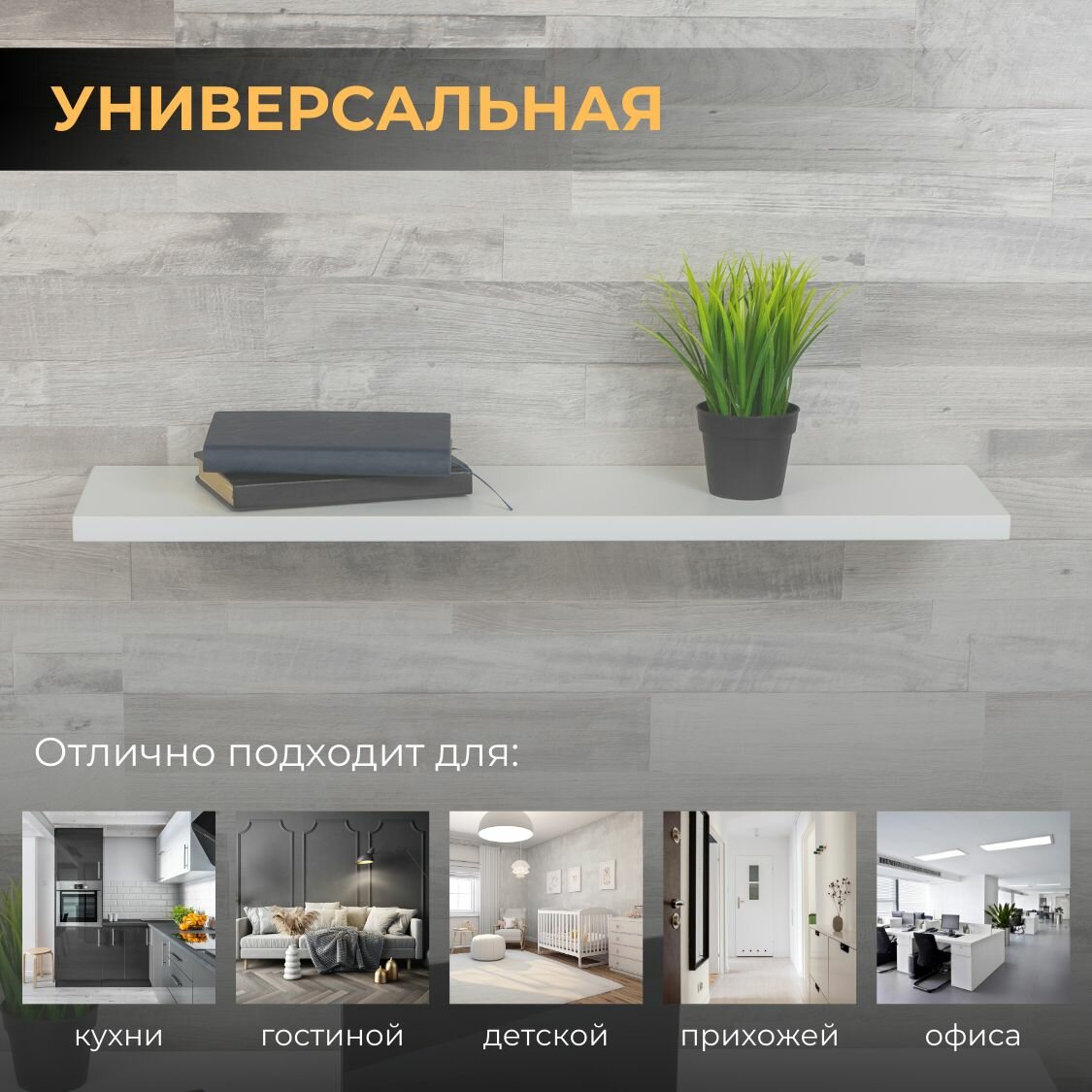 Полка настенная прямая навесная, со скрытым монтажом, Белая, 100х20 см